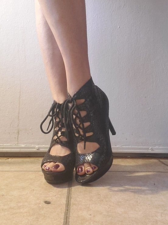 Black snake print colored peep toe heels from Shoedazzle. Very cute and in excellent condition, size 6 1/2. I just hardly have reason to wear them. Asking only $15