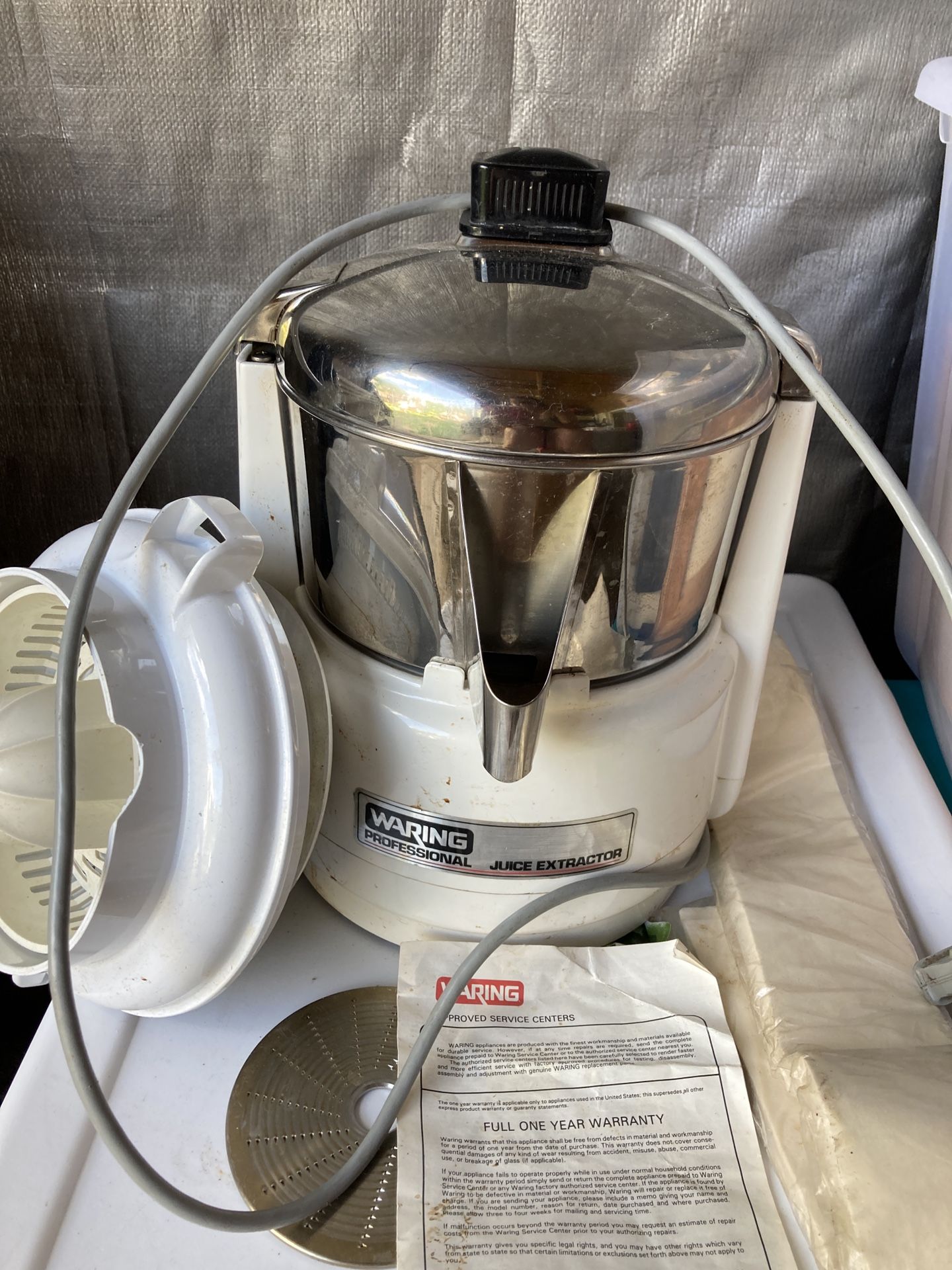 Professional juicer with citrus accessory costs $500 new it’s gently used. Removes pulp and gives you amazing juice . Very strong motor .