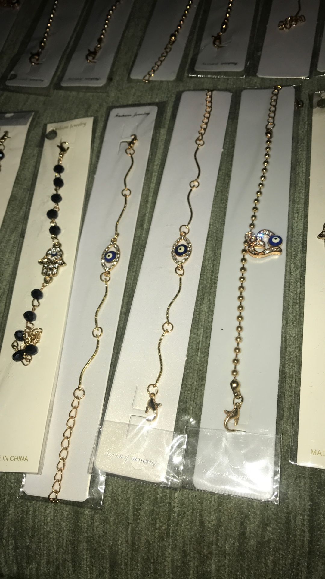 New in package 24 piece lot gold tone Indian evil eye repellent bracelet And necklace lot available to all sell for a bundle price