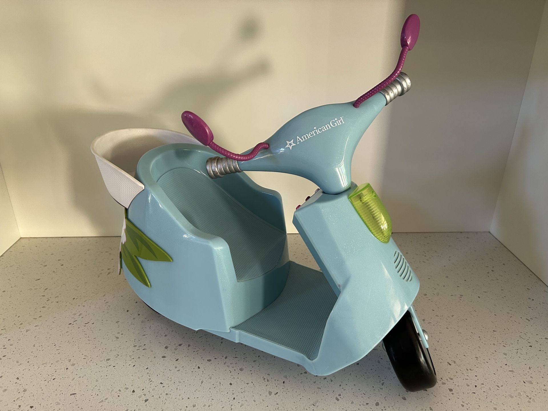 American Girl Island Scooter toy for 18" dolls. Retired in 2009. Light and sounds work. Has a few scuffs on it from play use but overall in excellent condition. Comes from a clean, smoke free home. Cash only, $20. Local pick up only, cannot ship.