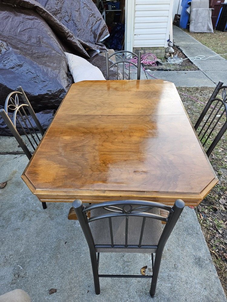 This antique dining table features hand carved wood legs and built in leaves. One of a kind. No chairs included. Seats 8 when extended Ask about fast delivery π ! Friendly professional service guaranteed