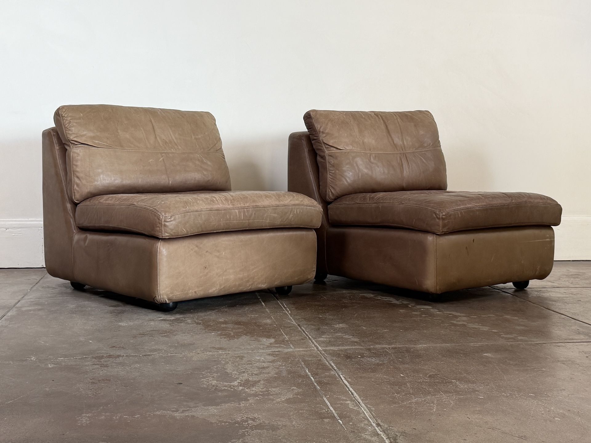 Vintage 1970s Taupe Leather Slipper Chairs