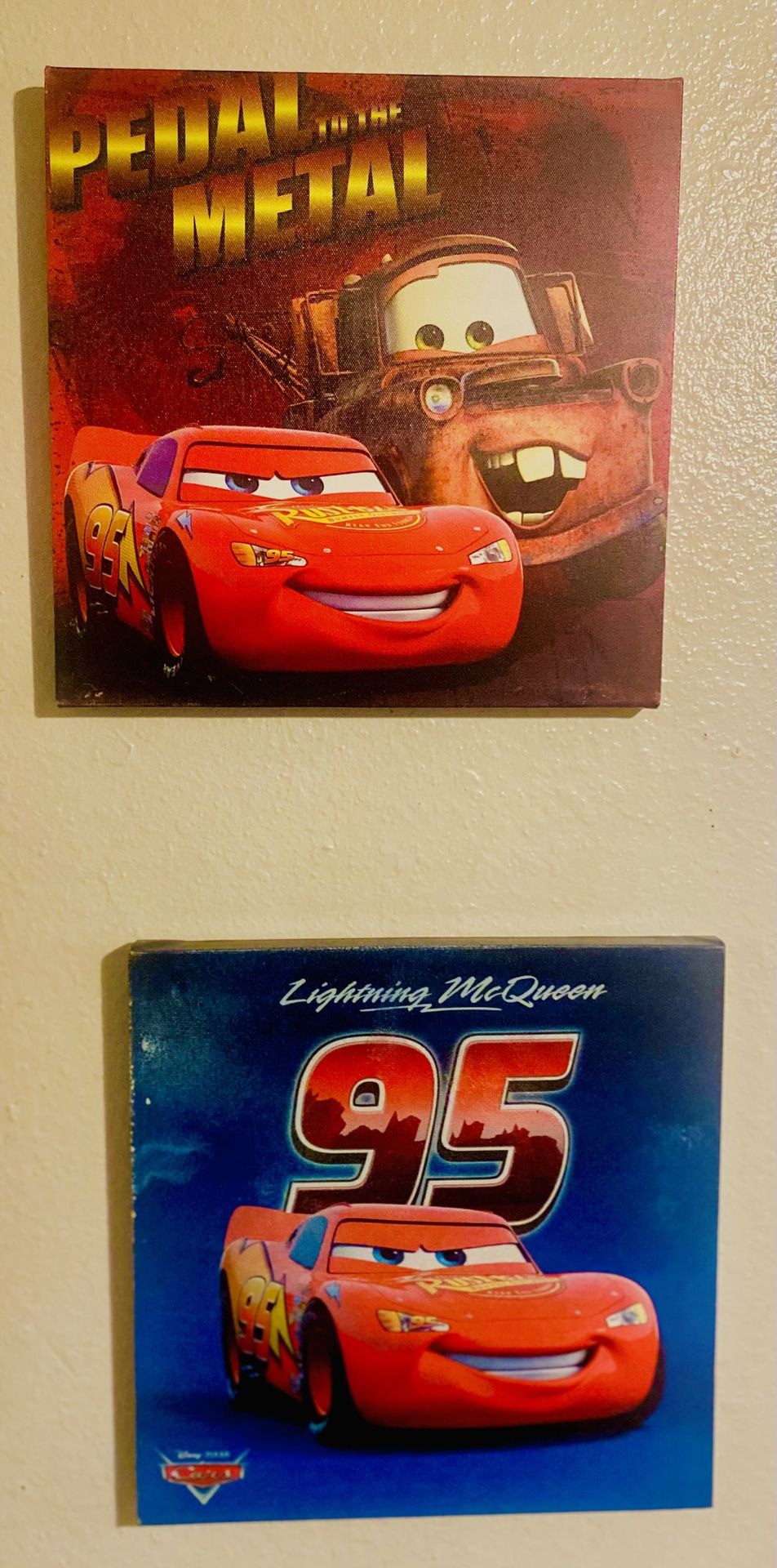 Two 11 by 11 framed canvas car pictures