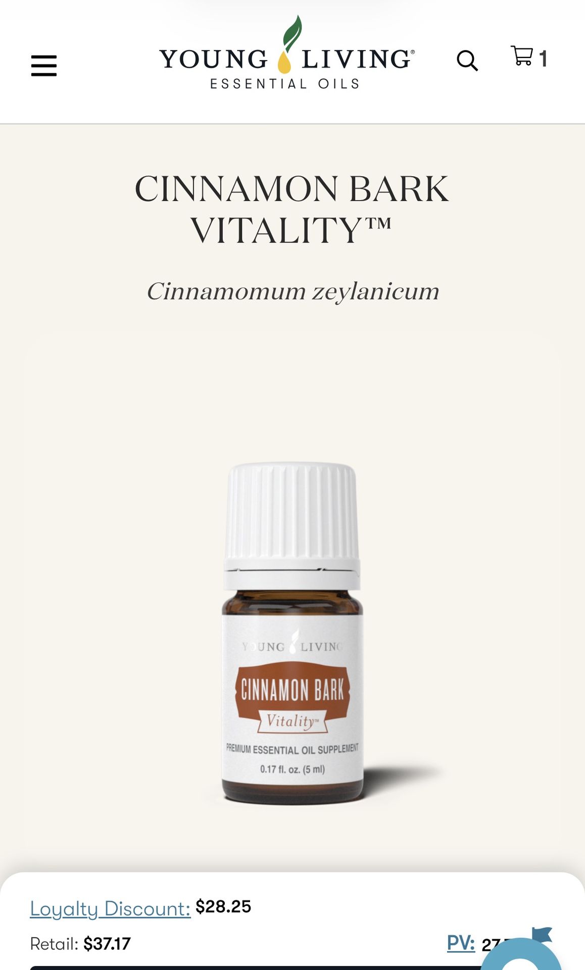 Cinnamon bark vitality 5 mL Young Living Essential Oils