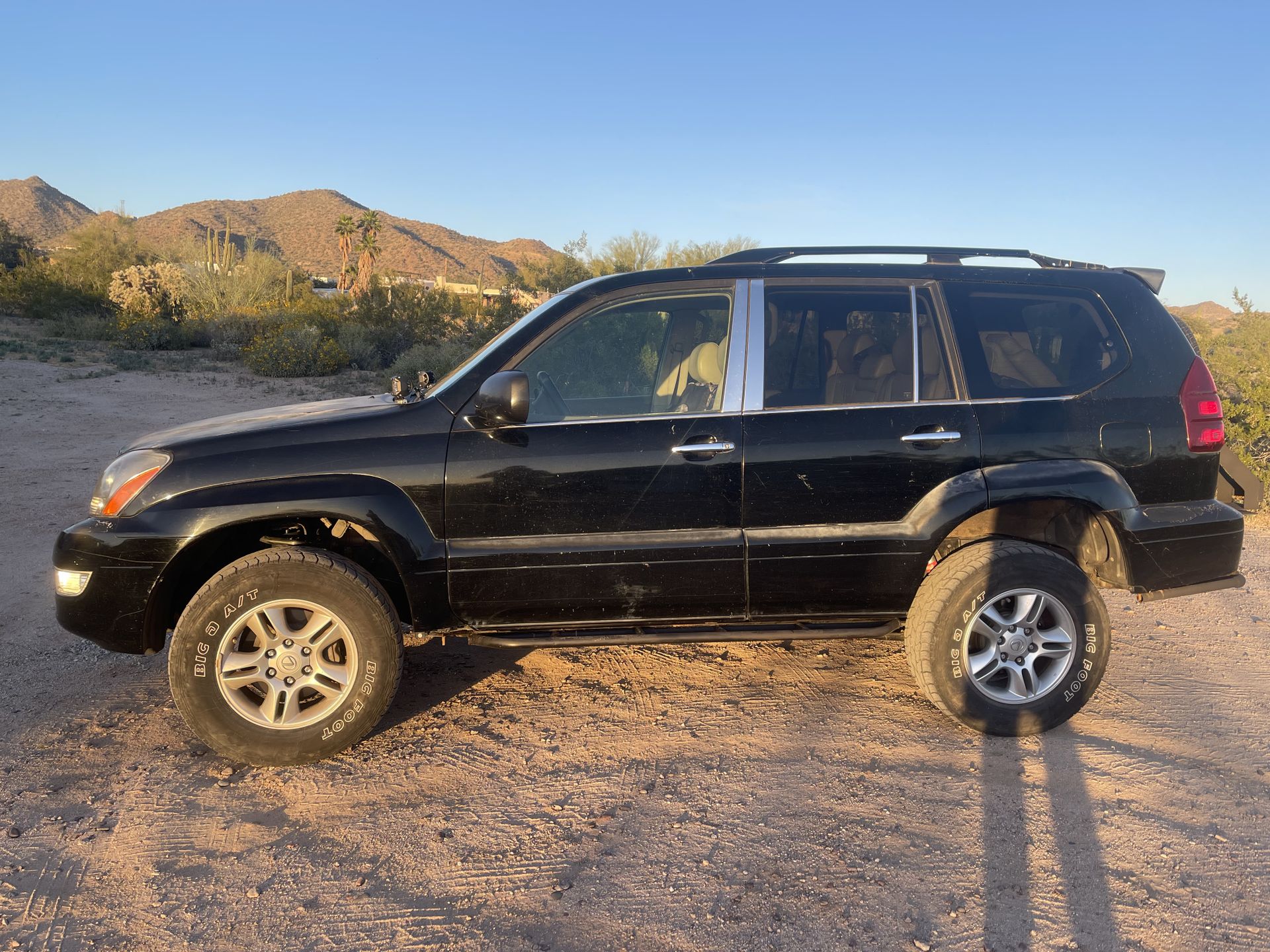 2003 Lexus GX470 182,000 miles Bilstien 6112 front suspension +2.5” lift Eibach springs/shocks in rear +2.5” lift Adjustable rear end links New front lower control arms/ OEM camber bolts Rear tire swing out and Jerry can holder Rock sliders Interior swapped to LED Third row seats Trunk sleeping platform/storage platform Hood pod lights 180 degree awning Traction plates Well maintained with a long service history. Paint is faded, ac blows cold but ac controls don’t work (it is the motor servos), could use some seat covers, aftermarket radio turns on but does not work. Due for timing belt and water pump at 200k Clean title in hand $7500 obo