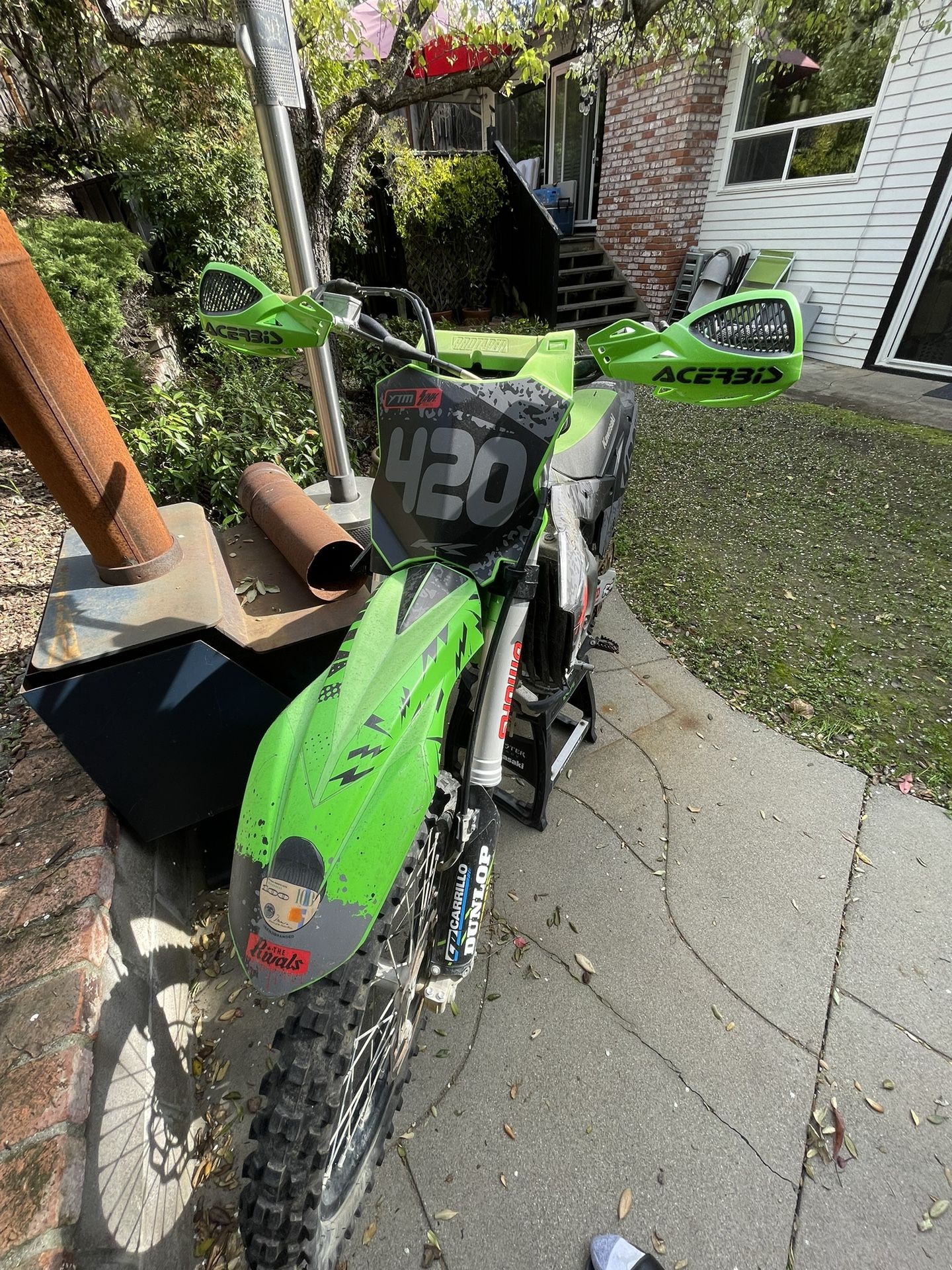 Kx250 runs GREAT Custom plastics Custom grips Custom brakes Fairly semi new chain Fresh oil Fresh filters