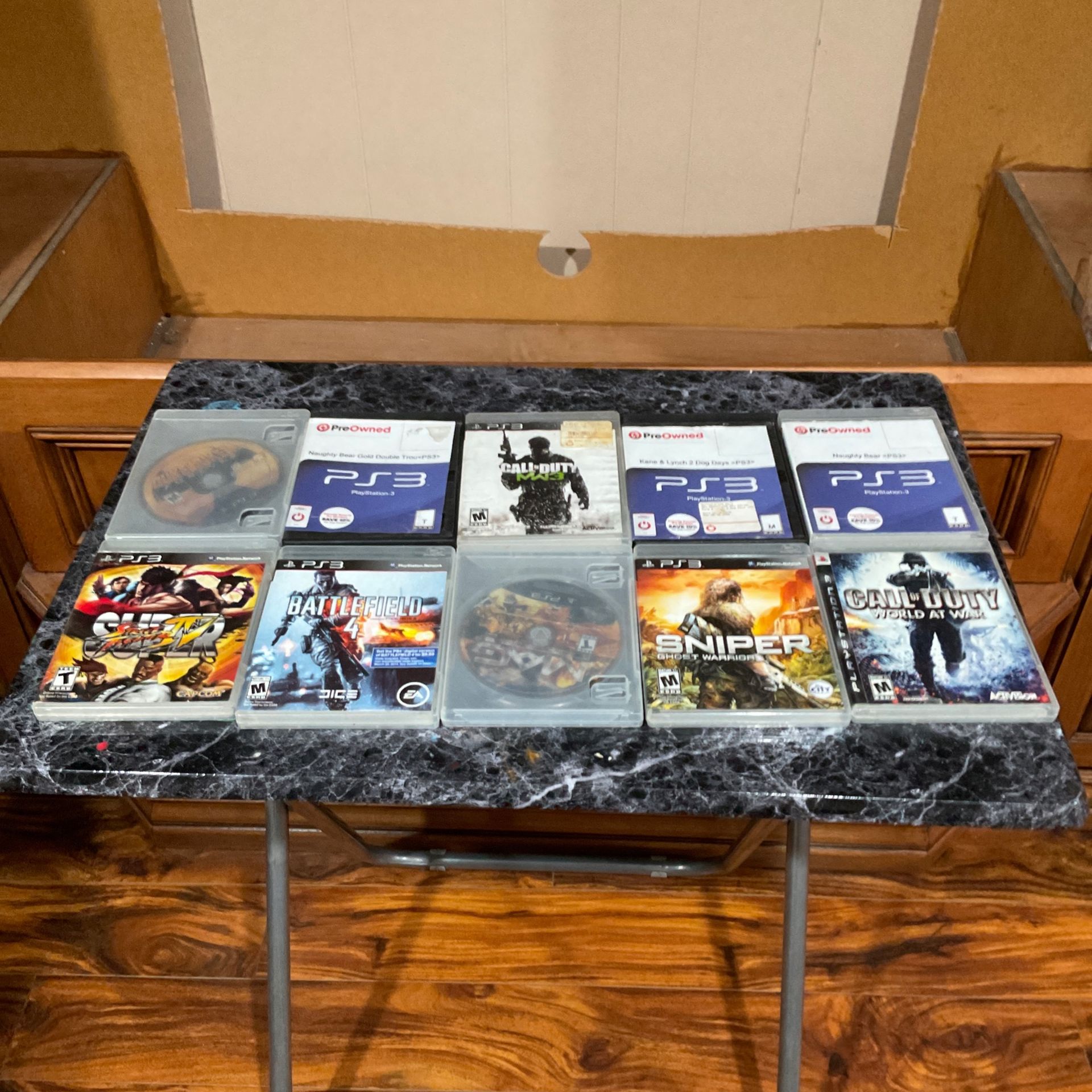 Battlefield 4,super street fighter 4, mag, sniper ghost warrior, call of duty world at war, duke nukem, call of duty MW3, naughty bear gold and regular, and Kane and lynch 2