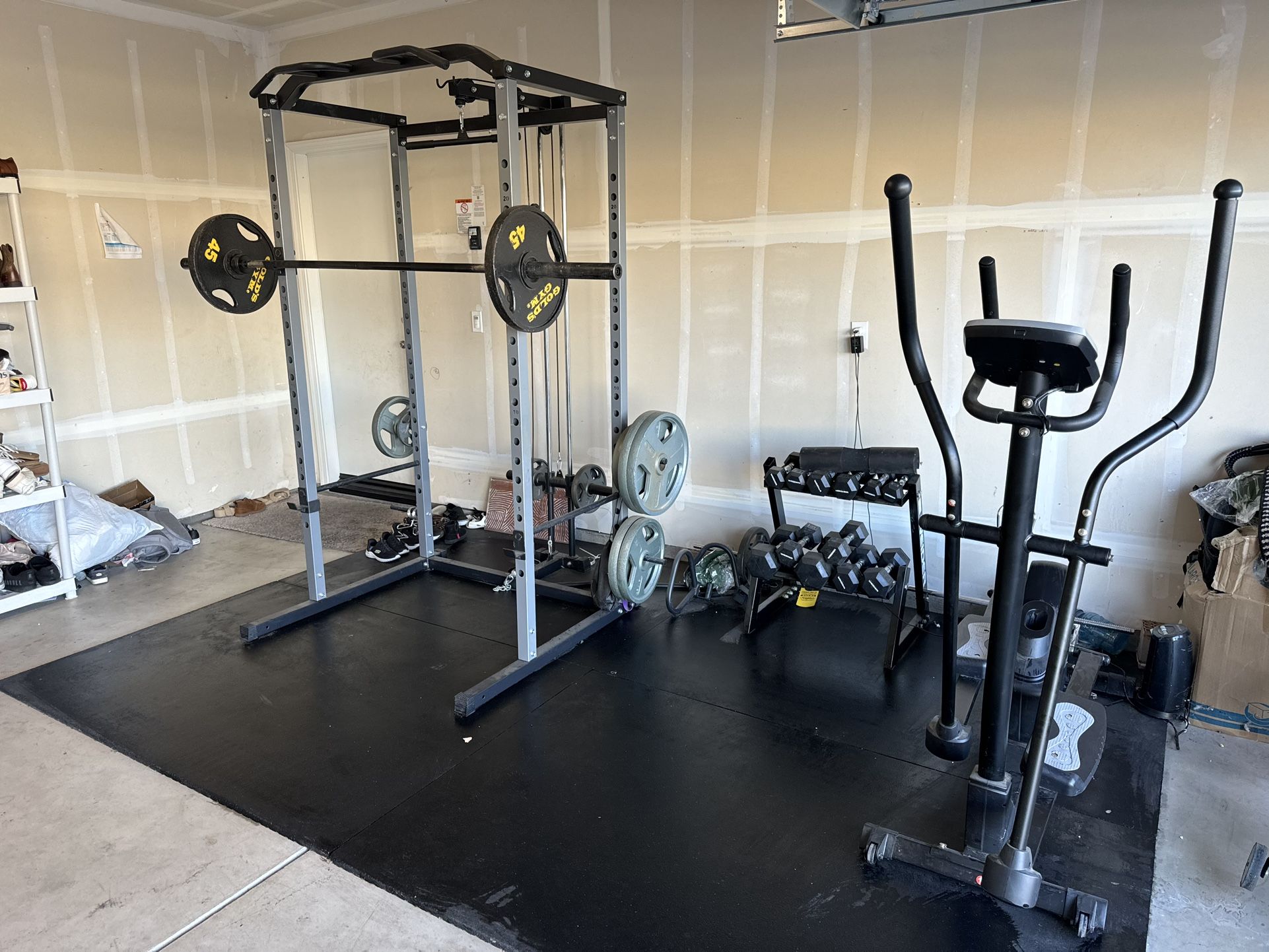Squat rack Dumbbell set Plates Elliptical Must pickup