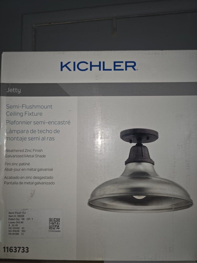 Semi-Flushmount Ceiling Fixture / Lámpara de techo de montaje semi al ras #eathered Zinc Finish Galvanized Metal Shade / Acabado en zinc desgastado Pantalla de metal galvanizado