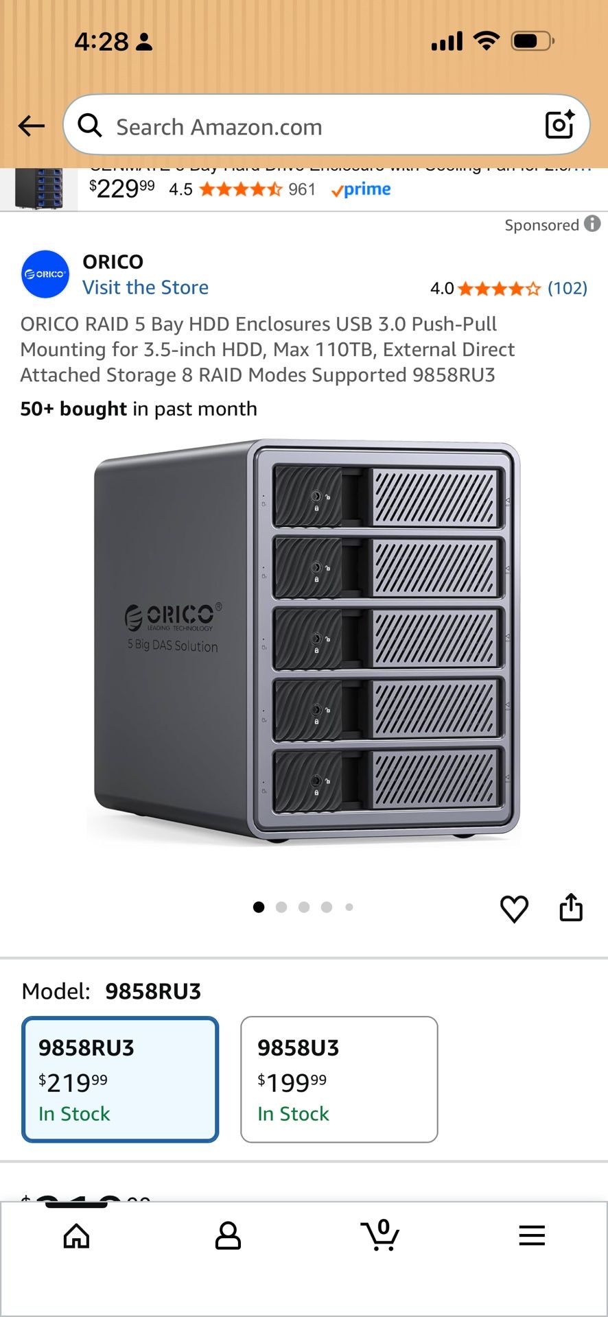 ORICO RAID 5 Bay HDD Enclosures USB 3.0 Push-Pull Mounting for 3.5-inch HDD, Max 110TB, External Direct Attached Storage 8 RAID Modes Supported 9858RU