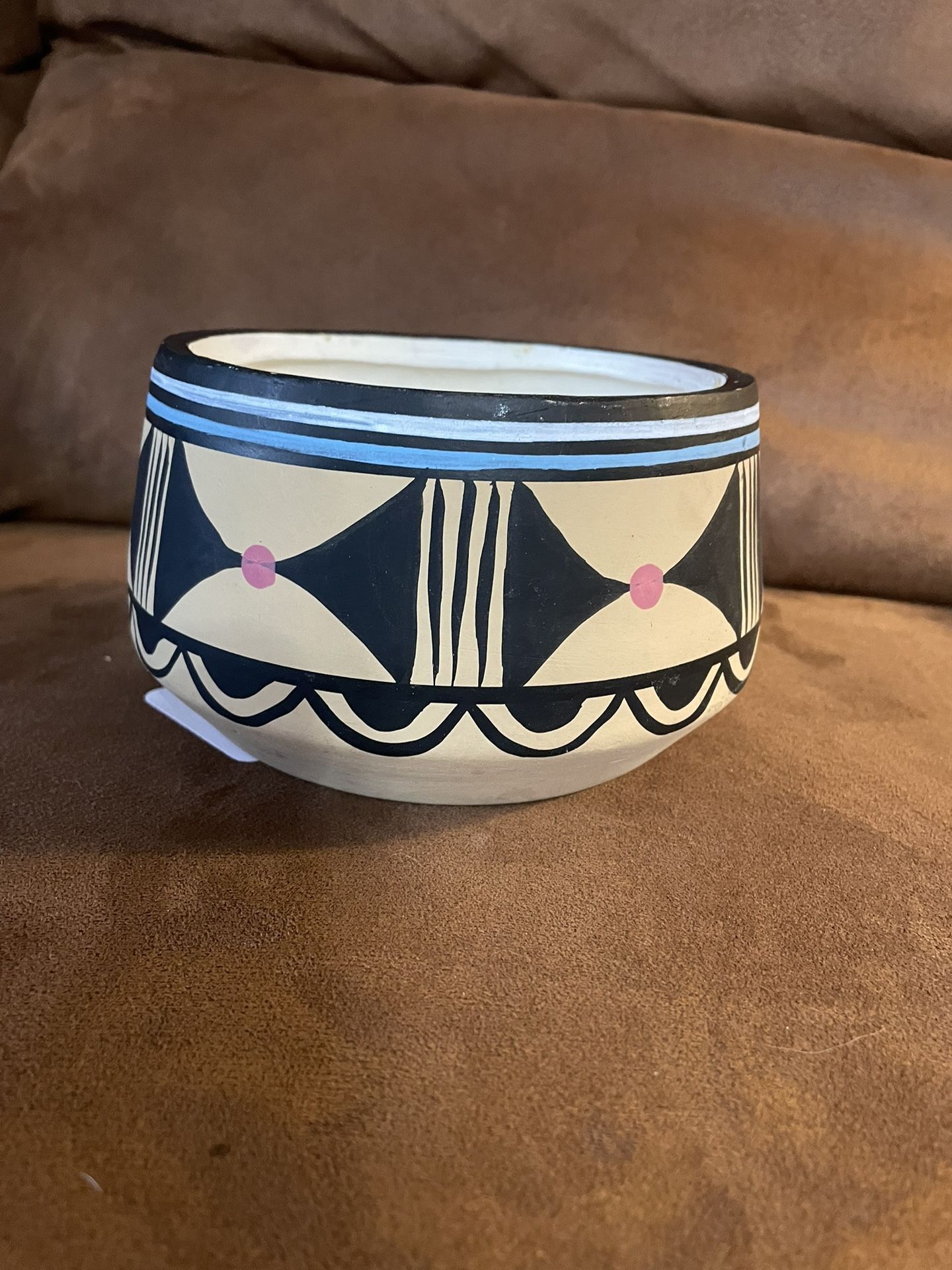 Hand made Ceramic Hand painted Can be used for flowers 3” tall x 5” diameter