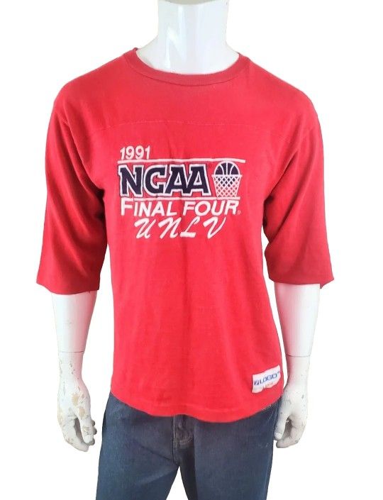 Vintage 1991 UNLV Runnin Rebels NCAA Final Four Logo 7 Basketball T-Shirt Men's Size Large Measurements (Laying Flat): Length: 27" (Top to Bottom) Chest: 20" (Armpit to Armpit) Shoulders: 20" Sleeves: 12" (Pit to Cuffs) Conditon is Good to Fair Pre Owned Vintage. Shirt has linting marks due to age, but design logo is still intact. Please review the photos.