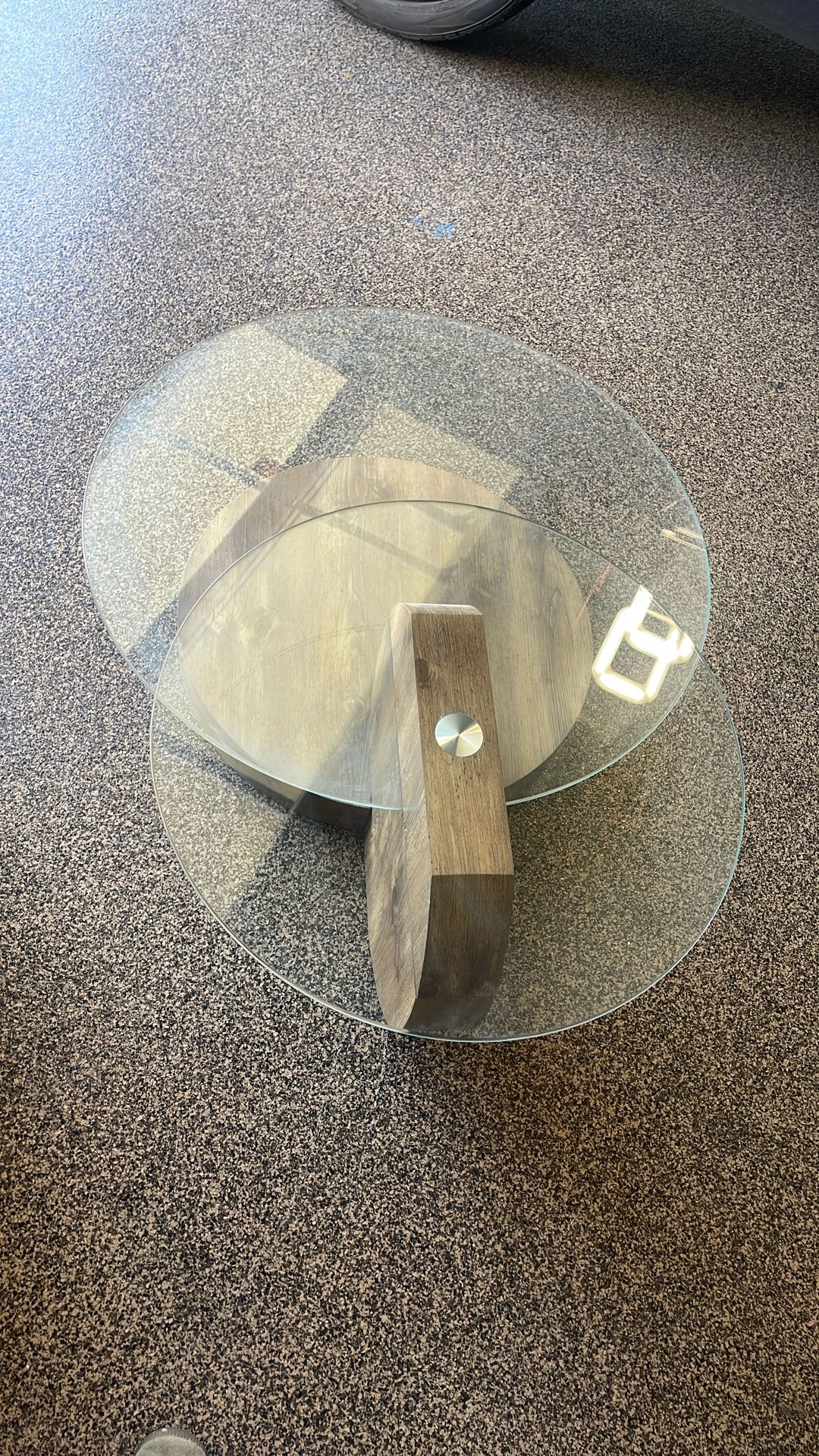 Modern Glass Coffee Table for Living Room, 3-Tier 42" Round Table, Clear Tempered Glass with Light Oak Wood-Look MDF Base
