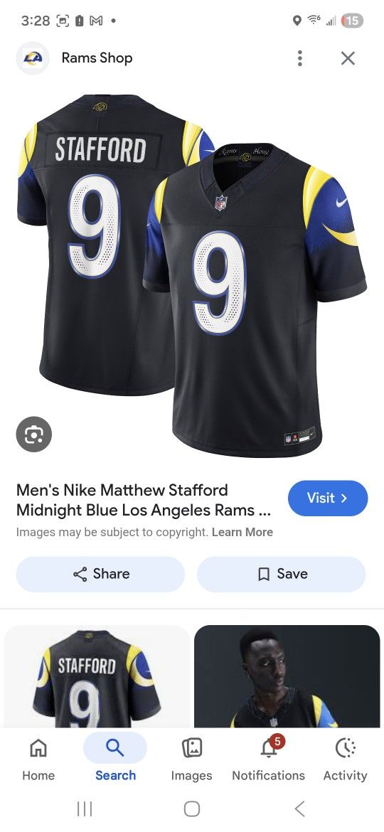 Matthew Stafford L A Rams Jersey Sizes S Thru 3X