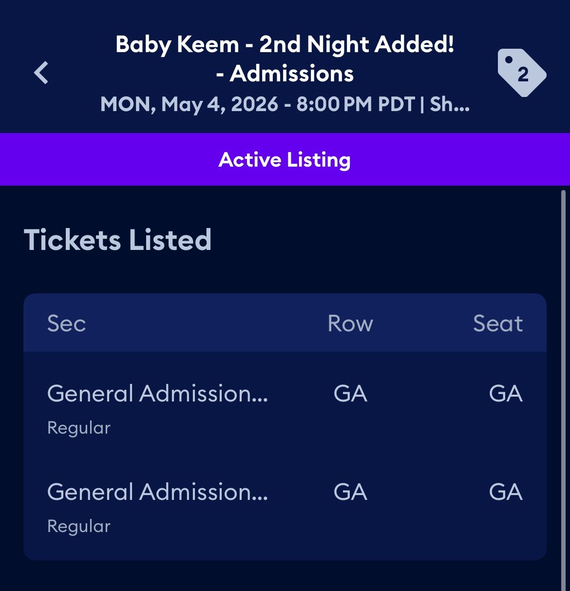 Selling for $275 for both or obo. Will be sent via AXS app. Trusted seller, check my ratings.