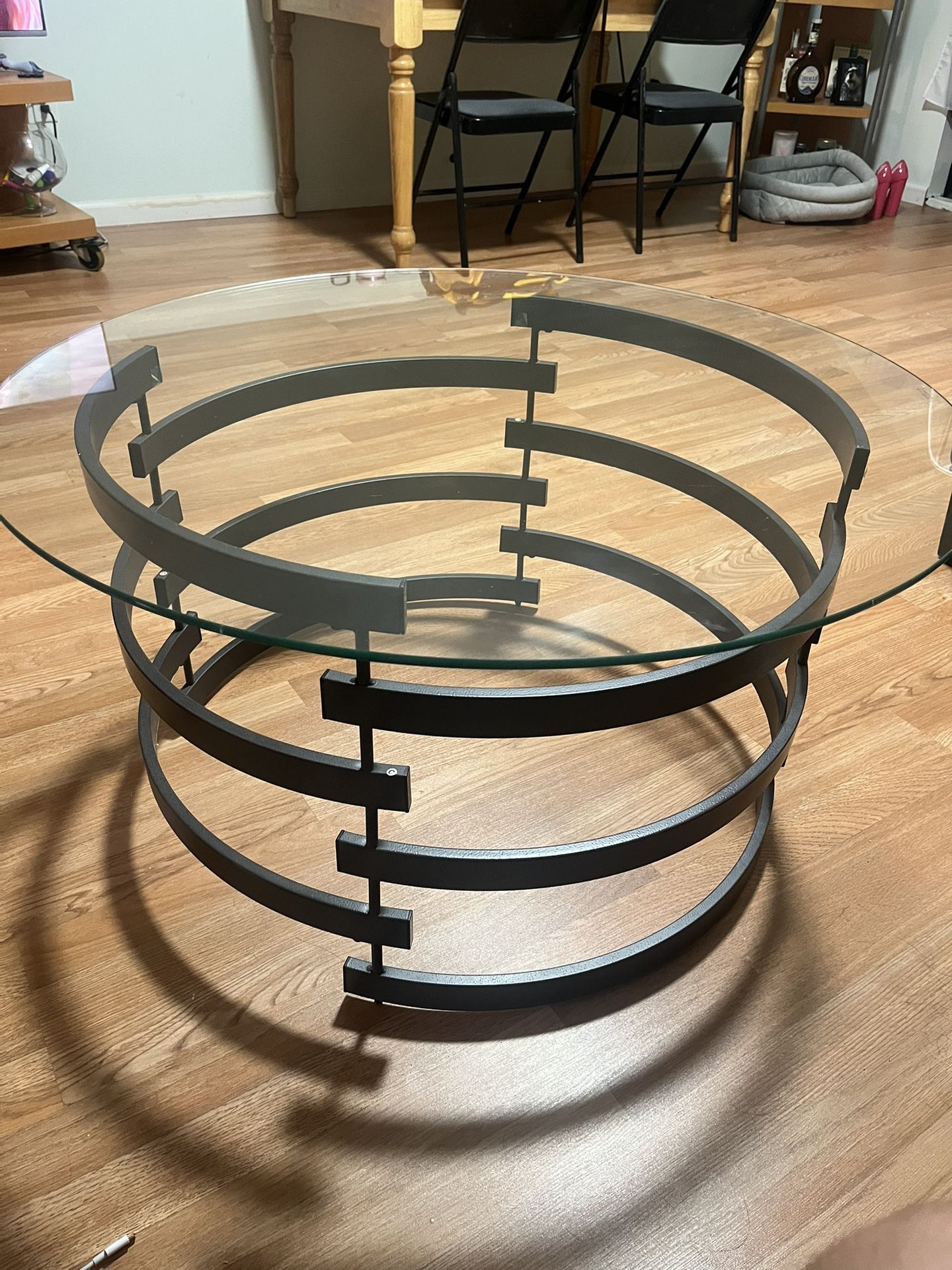 I have two side tables with metal frame and detachable glass top. The first two photos is one that’s wider $40. The last two photos is a smaller but taller table $30. Price is negotiable.