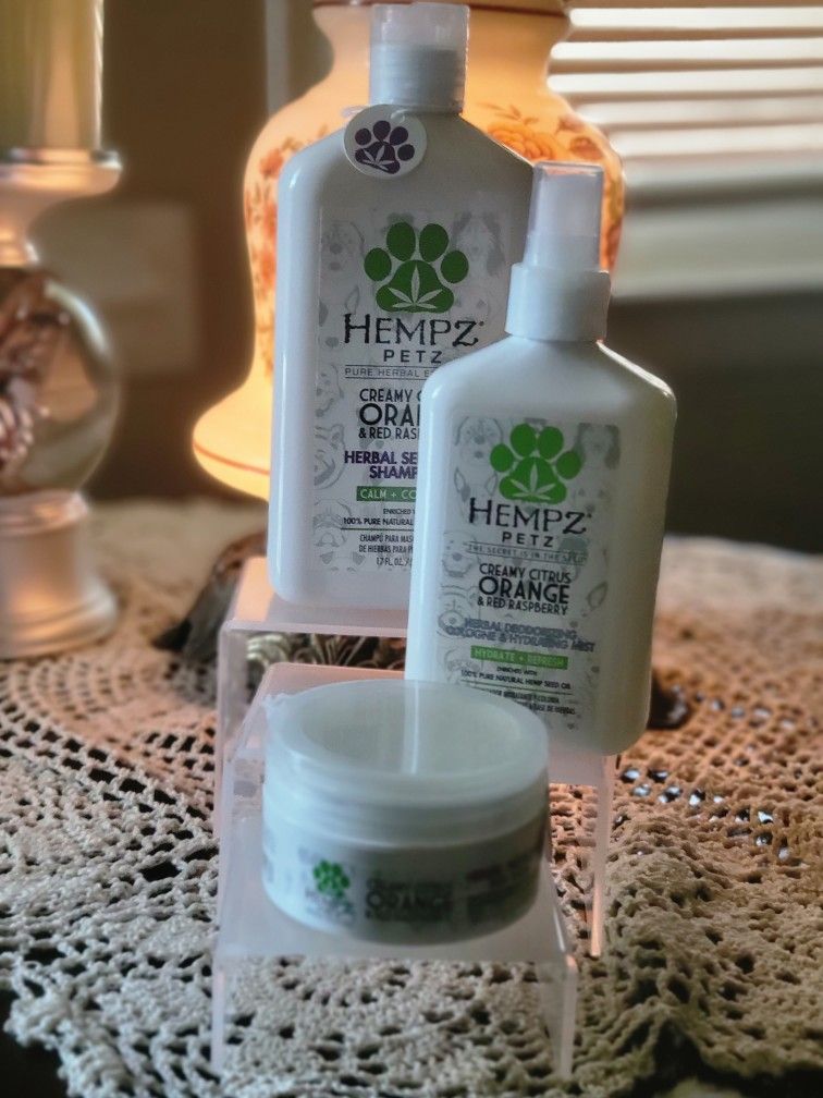 HEMPZ Petz Pure Herbal Extracts Creamy Citrus Orange & Raspberry Herbal Sensitive Shampoo (Calm + Comfort), Herbal Protection Paw Balm (Protect + Condition), and Herbal Deodorizing Cologne & Hydrating Mist (Hydrate + Refresh)