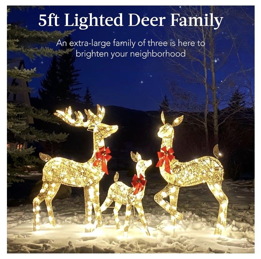 Christmas Deer Family Set 5Ft Outdoor 360 LED-lights