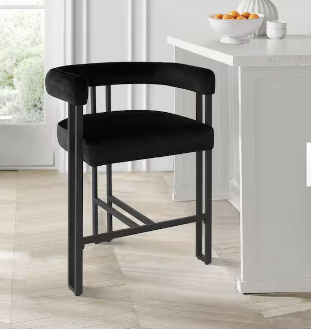 24 in. Seat Height Black Metal Frame Counter Height Velvet Bar Stool - SET OF 3 - Brand New