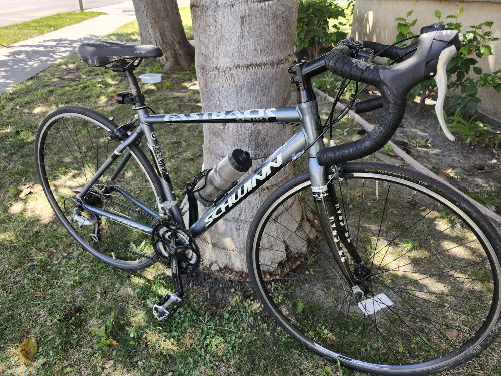 Small aluminum frame, Carbon Fork . Drivetrain 3×8, shifters shimano sora. Shimano tiagra components. Carbon Fork. Wheels 700c Alexwheels R500. Brand new Comfort plus saddle. Bike its in great, everything works fine . Great commuter, or great for training.