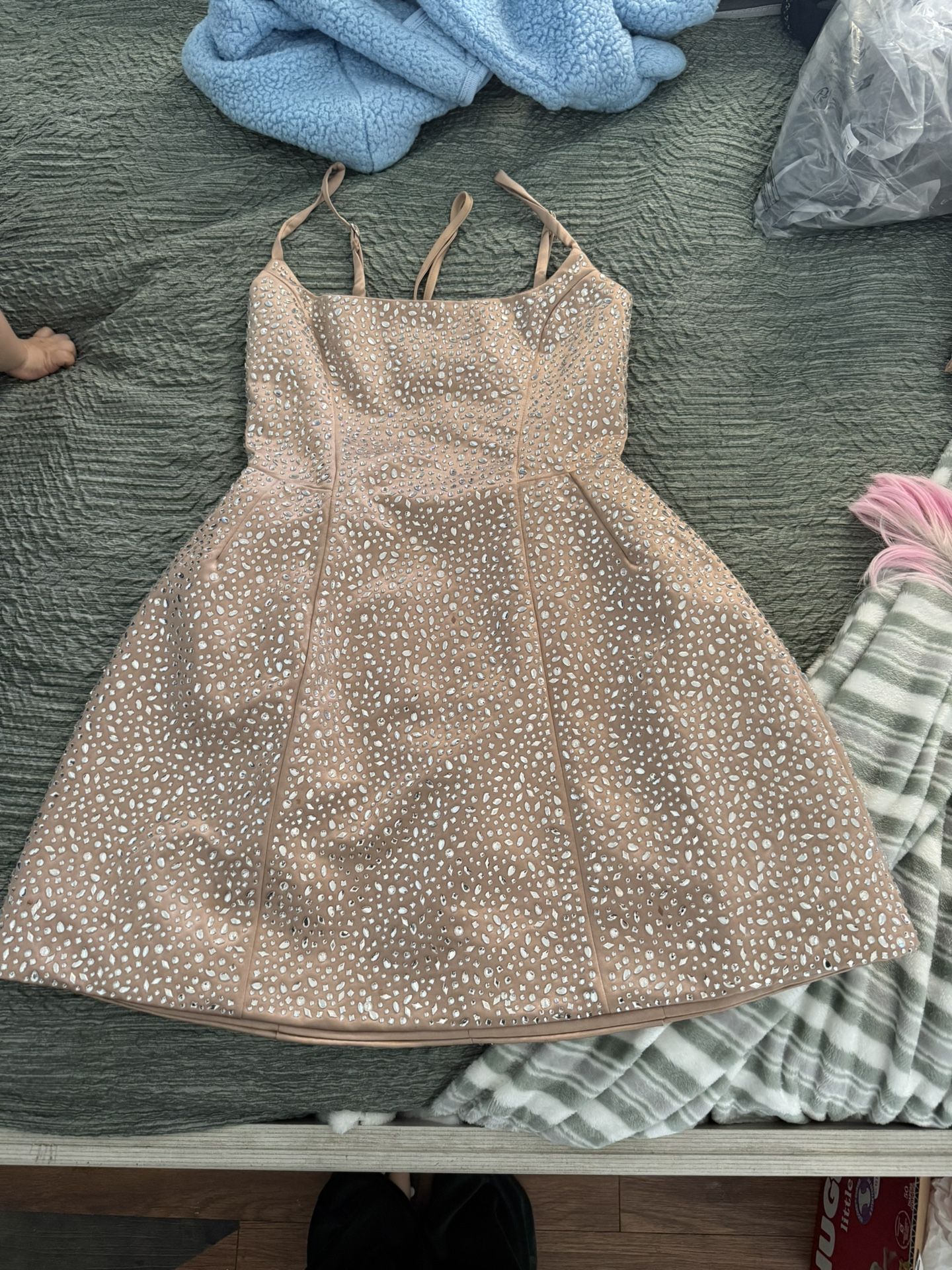 Only wear once in great condition the Dress is 300. But just asking for 100.