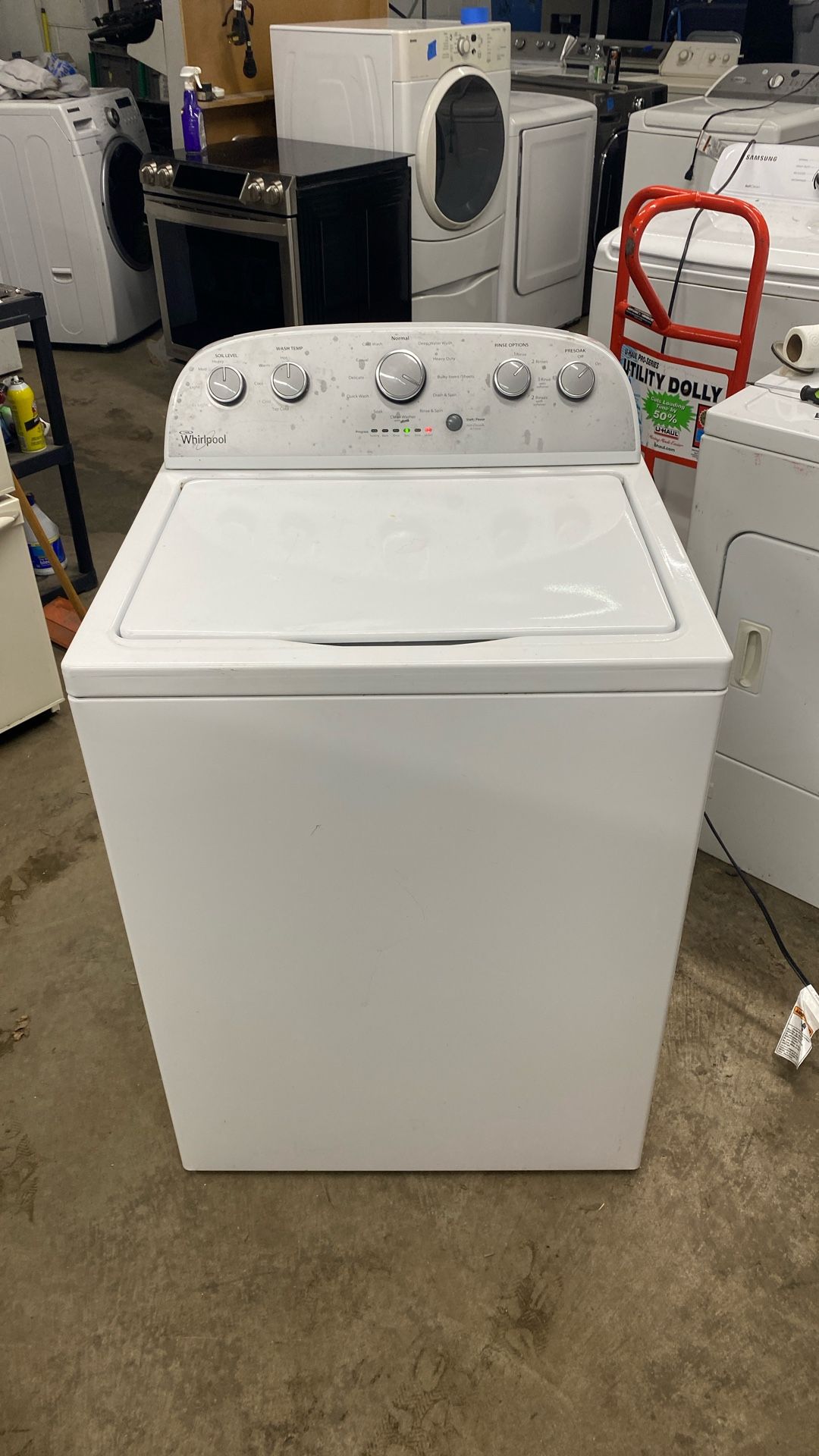 Used but refurbished, I offer a 30 day warranty, the machine is tested on every cycle with heavy duty blanket after new parts are installed. I also offer delivery and installation at a fee of 50$