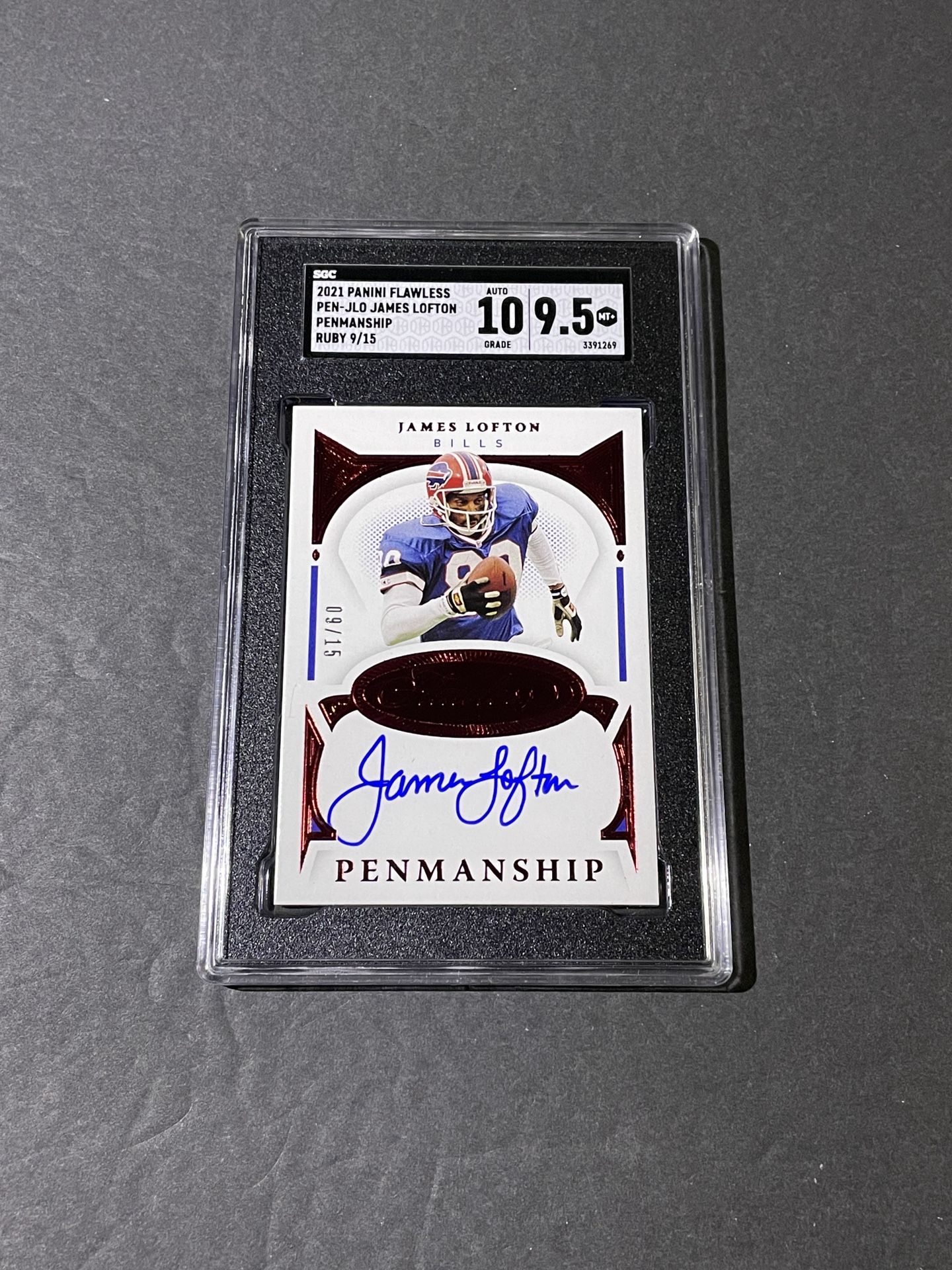 (SGC 9.5) 2021 Panini Flawless James Lofton Ruby Auto #/15 Card #PEN-JLO