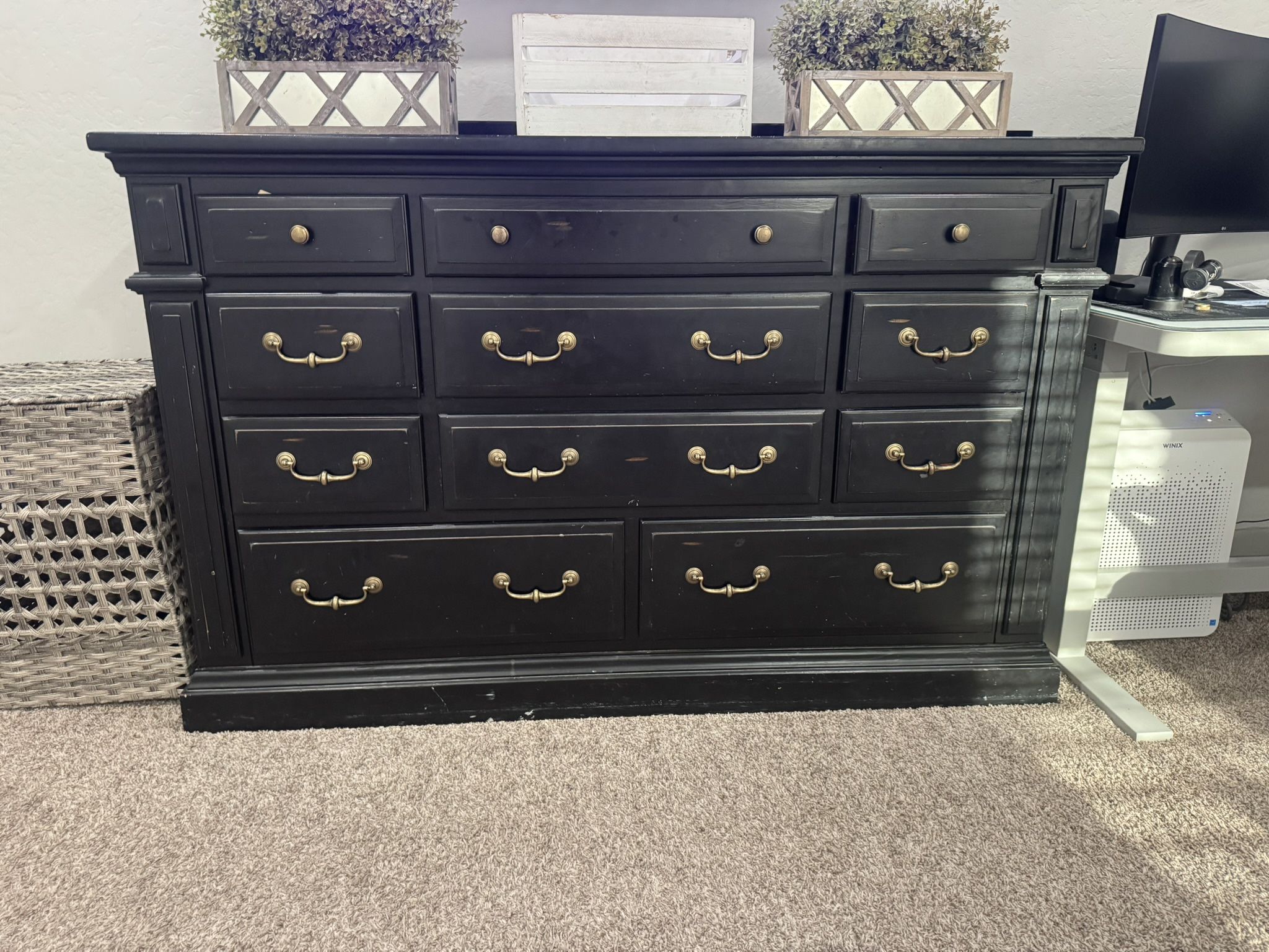 11 drawer dresser - all drawers work. Dimensions: 41 inches tall, 66 inches long, 18 inches deep