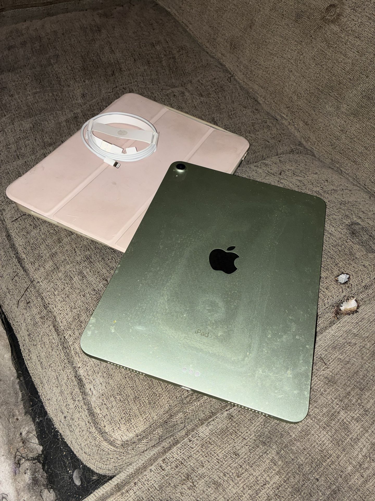 Hi I’m selling my apple iPad Air 4 generation 128 storage comes with hard back case color is white & the C-port charging cable & C-port box to plug in IT HAS A BROKEN SCREEN it turns on but it’s a black & half white screen BUT NO CRACKS ON THE SCREEN OR DENTS ON THE BODY ON OF THE IPAD ASKIMG 75$ OBO PICK UP ONLY COSTA MESA THANKS