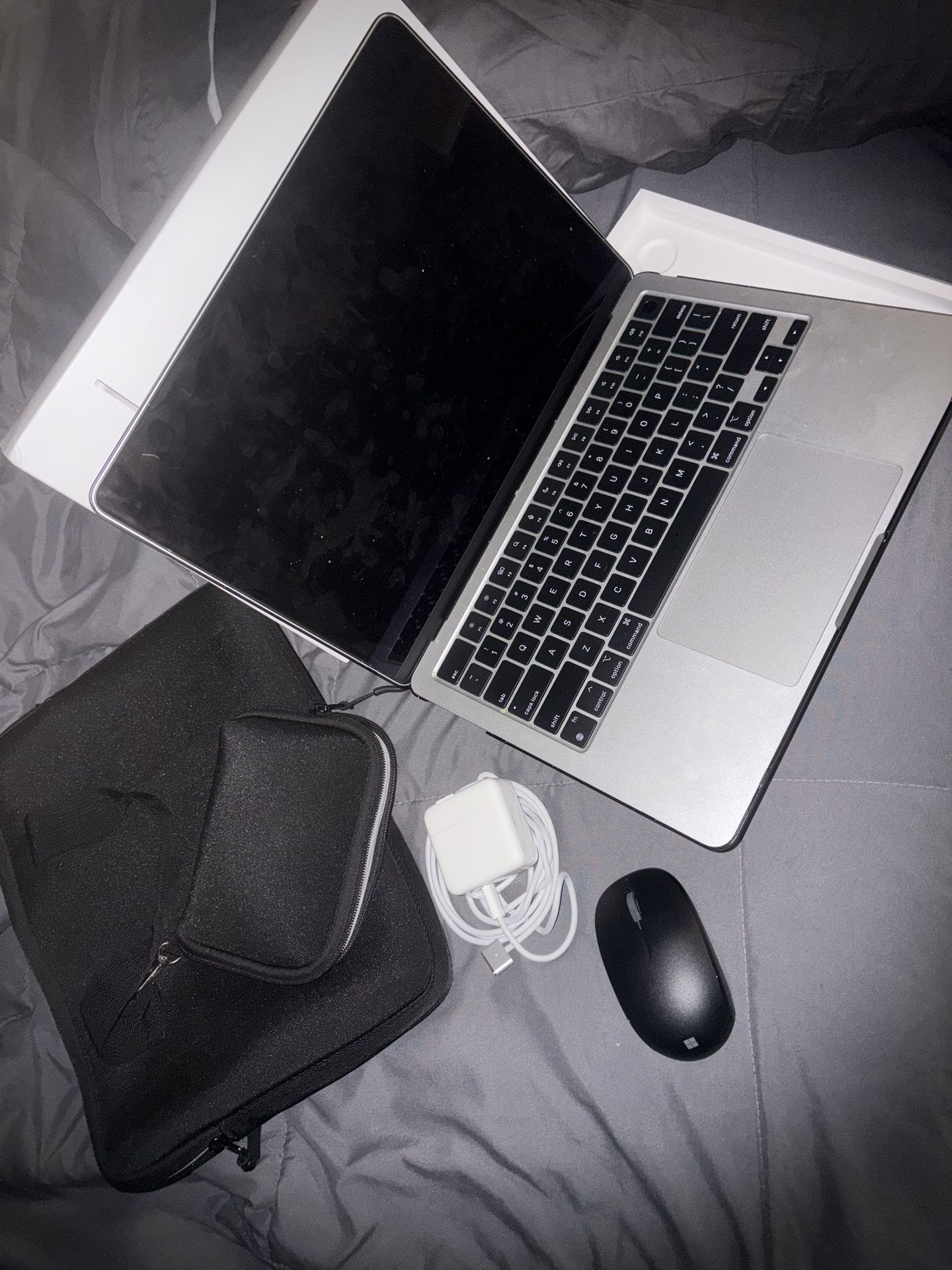MacBook Air 13.6" (M2 Chip, 2022) - Like New! Price: $850 Condition: Like new - used once Specs: 13.6-inch Liquid Retina Display Apple M2 Chip 8 GB Unified Memory 256 GB SSD Storage macOS (factory reset and ready for new owner) Battery cycle count: extremely low (used only once) Included Extras: Protective case Wireless mouse Carrying sleeve / laptop carrier Details: This MacBook Air is in excellent, like-new condition — used only once and kept in pristine shape. No scratches, dents, or signs of wear. It runs fast, smooth, and quiet - perfect for school, work, or personal use.