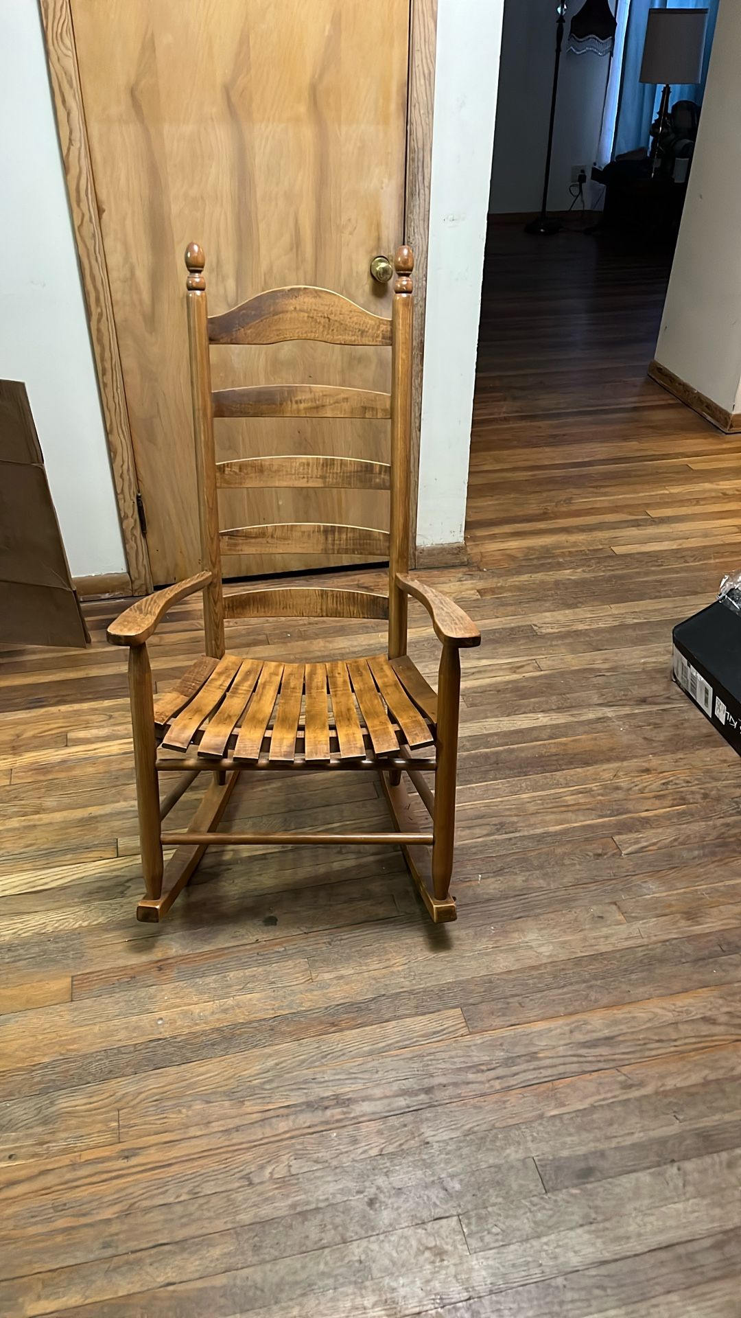 Wood rocking chair in nice condition, yes, it’s free. No, I will not deliver it.