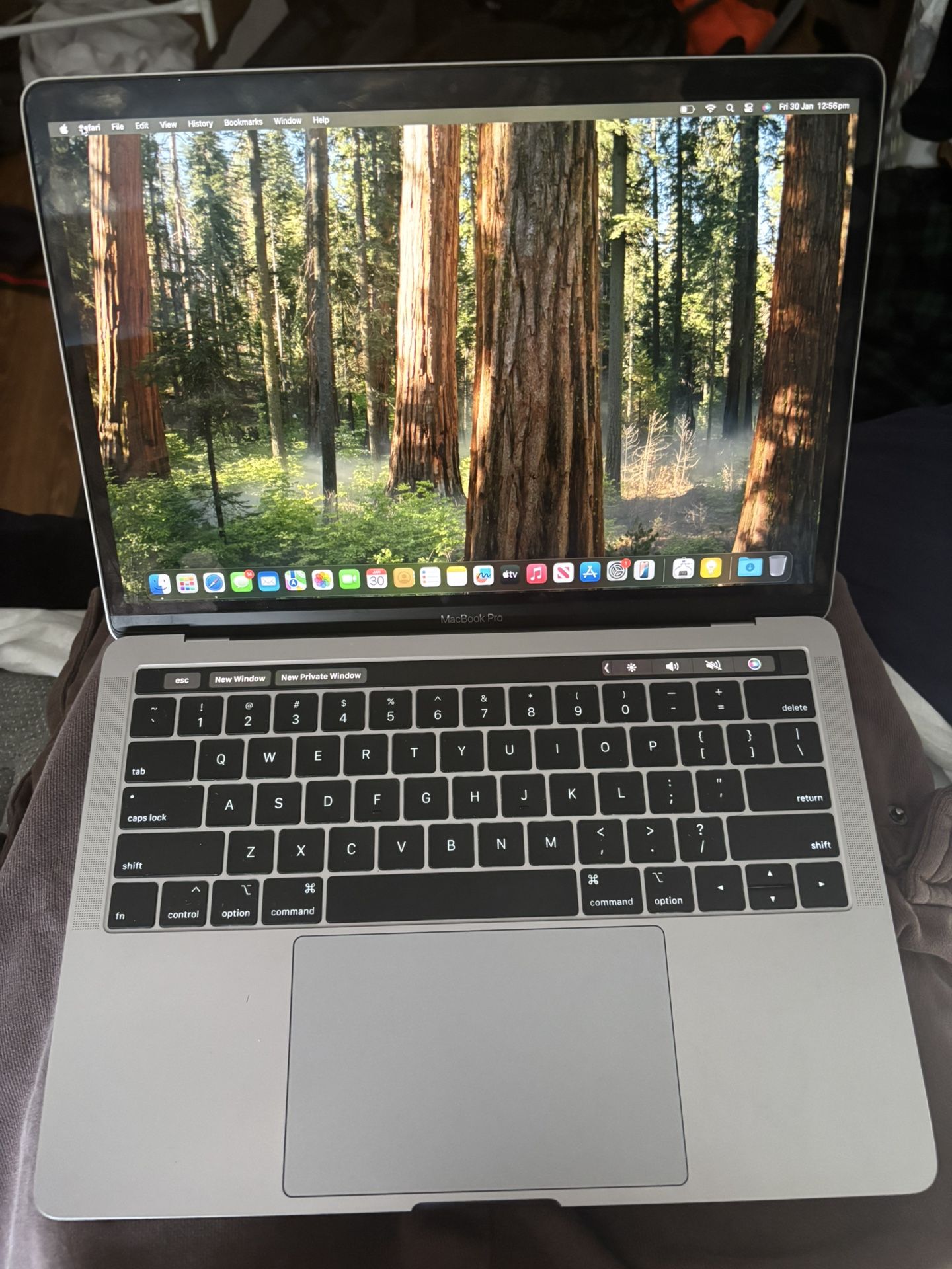 In new condition, no damages no scratches, touch bar, and touch ID both work iCloud unlocked I already signed out asking 300 or best offer