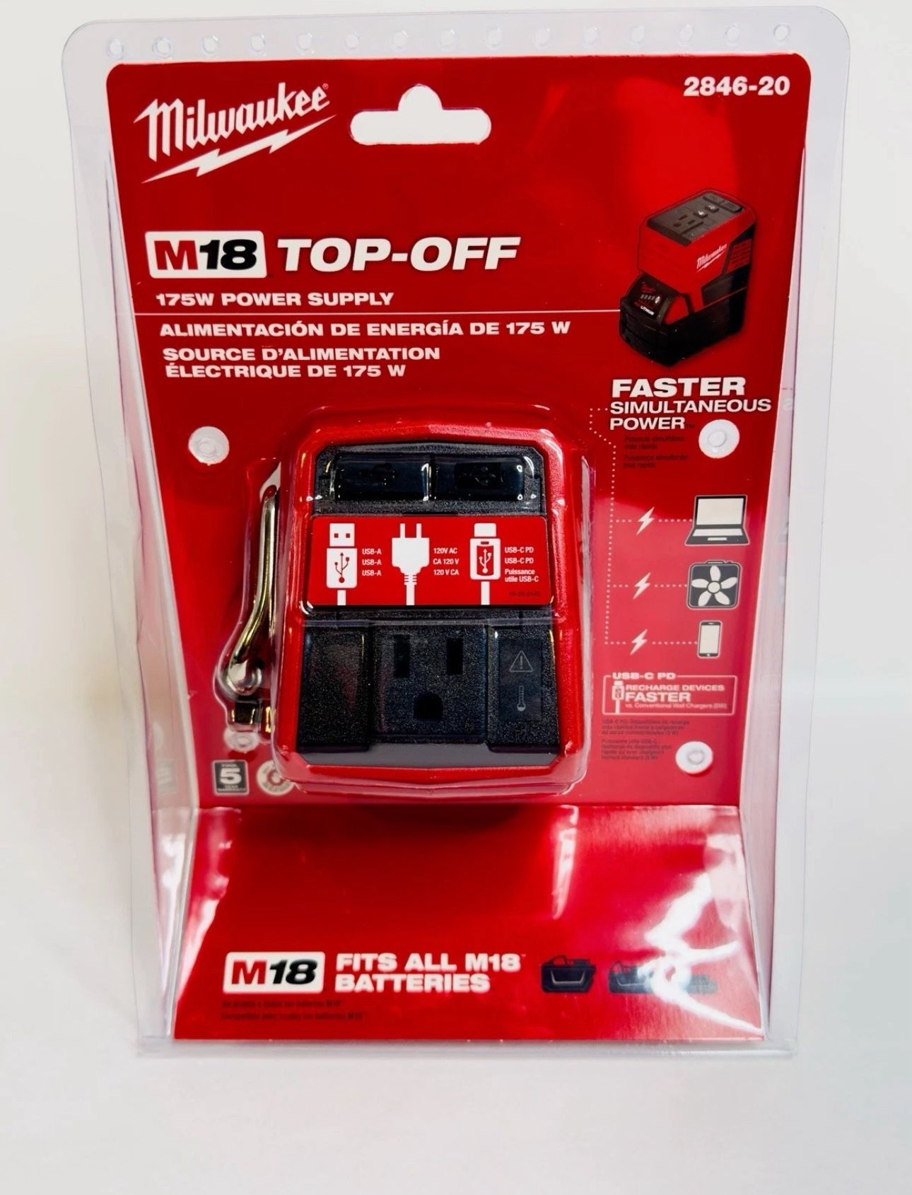 Milwaukee M18 2846-20 Top Off 175 Watt Power Supply USB 18V Outlet