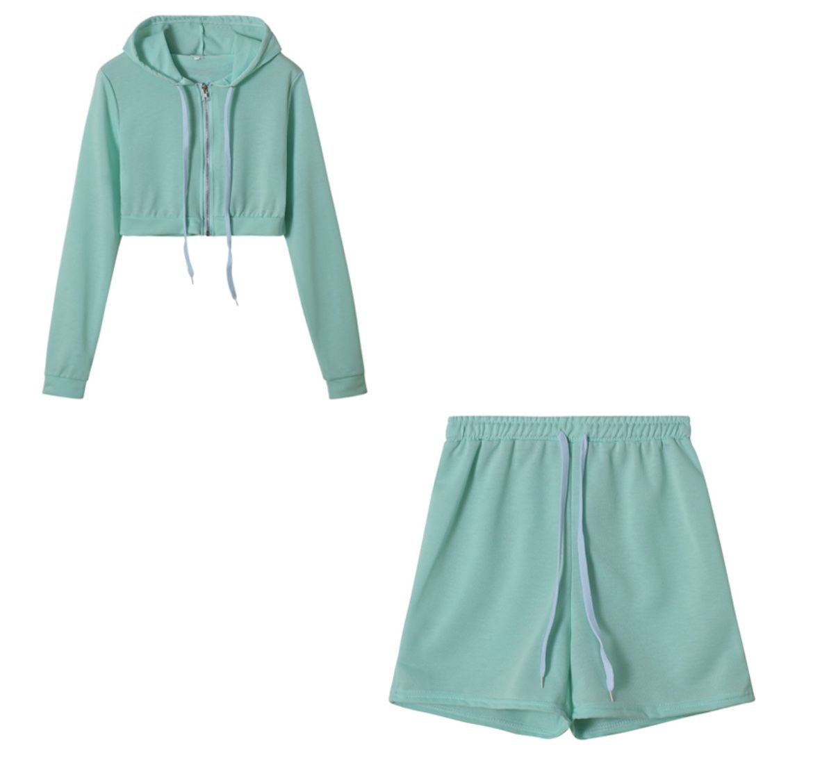 Zip Up Crop Top Hoodie Shorts Set