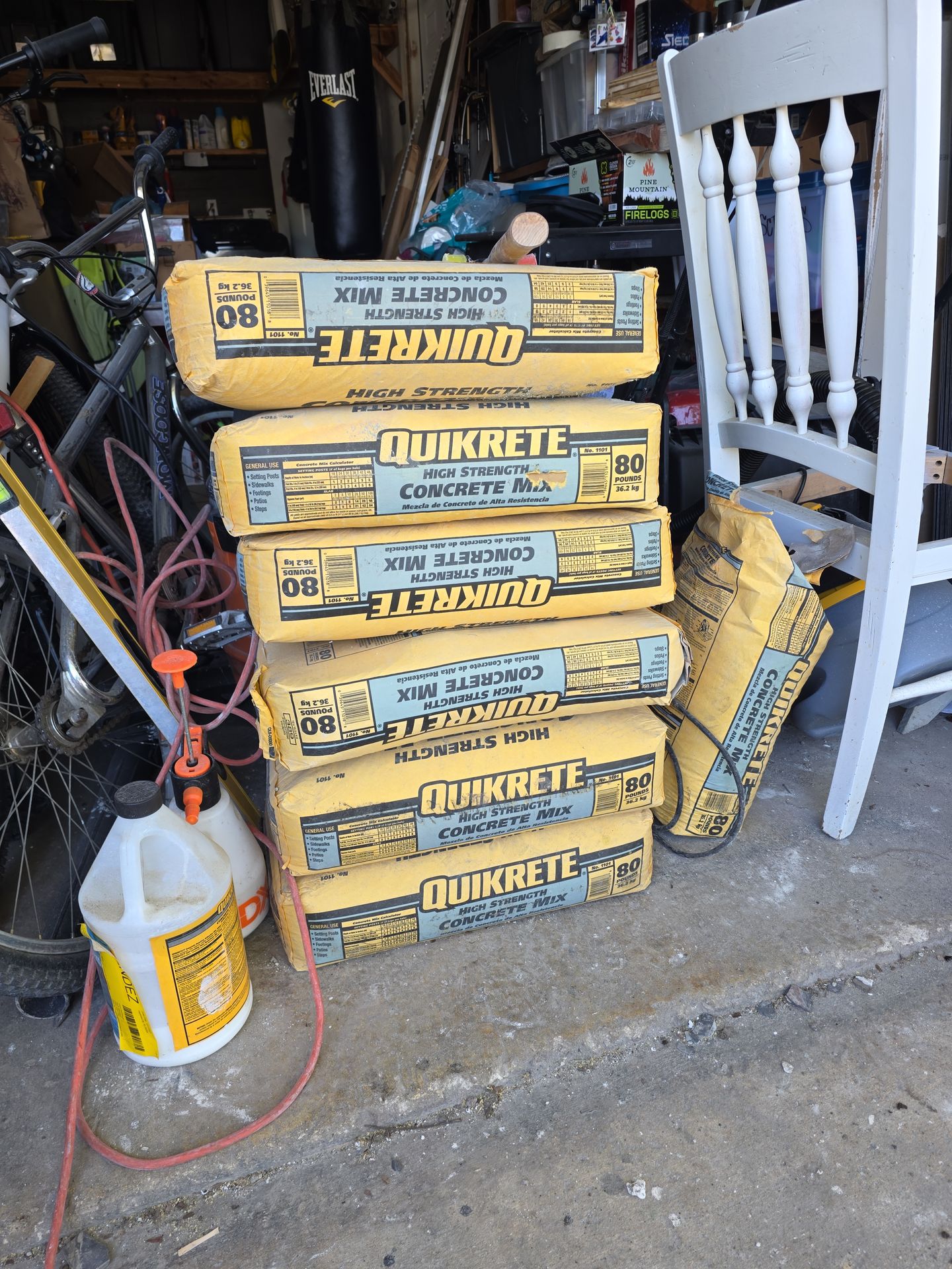 6 bags 80 lbs. Concrete Purchased 2 weeks ago. Had leftover. Come pick it up.