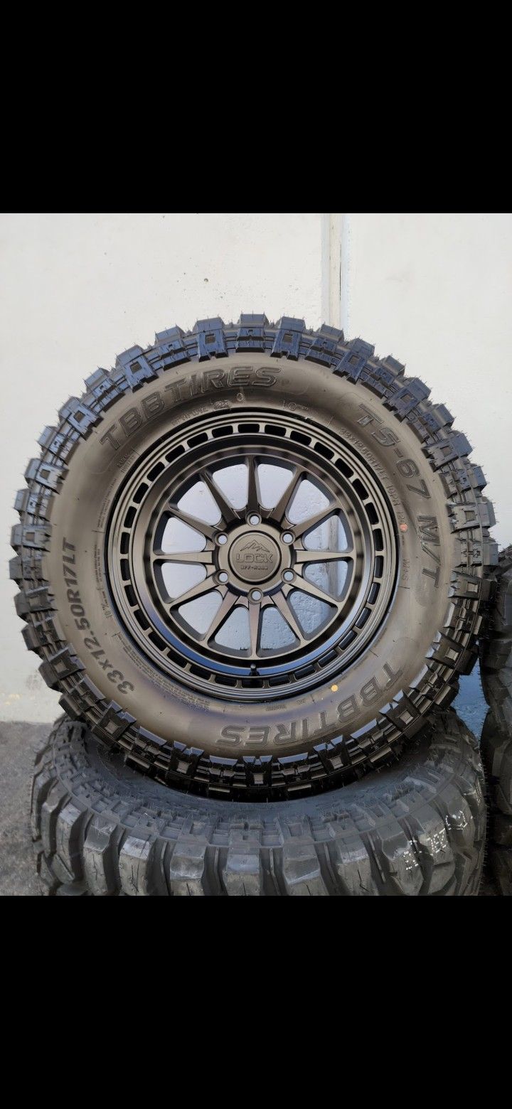 4) Brand new 17" inch LOCK BAJA wheels rims 17x9 +1mm offset and 33" inch Ridgecrawler RT tires 33 inches LT33x12.50R17 10 Ply E Rated matte satin black $1600 90 day same as cash no credit check financing available 6 lug all pickup trucks and suvs Chevy Silverado 1500 trucks Tahoe Suburban Avalanche GMC Sierra 1500 midnight edition Denali Yukon Dodge Ram 1500 Laramie Longhorn TRX Rebel Nissan Titan Armada Toyota Tacoma trd pre runner lt ltz rst z71 2wd 4x4 6x5.5 6x139.7 bolt pattern all terrains rugged style level kit suspensions limited AT4 Elevation 4runner fj cruiser 4 runner SR5 Pre runner t100 285 70 R17 265-70 R17 trd pro k5 blazer beadlocks Ford Ranger Bronco xl xlt svt Raptor badland sasquash v6 v8 all terrains mud terrain lifted level kit ecoboost 33x12.50R17 35x12.50R17 icon wheels methods raceline toyo open country falken wildpeak general grabber red letter bridgestone continental michelin all seasons at3w 33 17 35 20 33s 35s 37s 40s Tundra Lexus GX460 Toyota Landcruiser offrading fox shocks king suspensions limited custom rims silver brushed 2024 , 2023 , 2022 , 2021 , 2020 , 2019 , 2018 , 2017 , 2015 , 2015 , 2014 , 2013 , 2012 , 2011 , 2010 , 2009 , 2008 , 2007 , 2006 , 2005 , 2004 , 2003 , 2002 , 2 wheel drive 4x4 dirt sand rugged bilstein shocks suspensions 4" inch lift 6" inch lift 3 inch lift chevrolet fifteen 52 grid overland durable 4wheel parts hardrock split spoke pro comp fuels assult terrains black on black titanium grey rockstar mickey thompson xd series beast double standard jeep wrangler rtx kansei rock crawler gladiator military style LOCK black rhino mcgaughys vision wheel readylift sst maxtrac dirt king base model long travel lifted xl methods icon fuel rims beadlocks rbp moto metal tis rolling big power kc baja champions rough country fox mint 500 grapplers trophy trucks rocks air rines black chrome leveled kit kmc kc shocks upper control arms cognito bds cst nitto grappler goodyear wrangler duratrac pickups icon race wheels lexus gx460 overland diesel ecoboost ranger 37 inch 33 inch 35 inch 37x12.50R17 33x12.50R20 35x12.50R20 35x12.50R18 18 17 22 24 tis methods tundra level kit rough country made in Japan USA king moto metal beadlocks trails dirt sand rugged heavy duty light weight 315 70 17 general grabber red letter 90 day same as cash financing available will buy and trade old rims and tires originals oem factory s lexani asanti 35s 37s 40s 33s 34s 22x12 24x12 26x12 26x14 28x14 20x12 ssw blacked out tough rims black on black 33s 35s 37s 40s 33x12.50R17 35x12.50R17 37x12.50R17 37x13.50R17 285 70 R17 33x12.50R18 33x12.50R20 35x12.50R20 275 55 20 33x12.50R22 33x12.50 24 37x13.50R20 toyo open country nitto grappler goodyear duratrac pickups tires falken wildpeak at4w at3w mud terrains advanta accelera proxes a/s dynapro hp2 Sumitomo htr arroyo custom tires 421v xt rt general grabber bf goodrich tako2 ko2 km3 bridgestone revo kumho road venture Goodyear Wrangler duratrac 33x12.50R18 18 inches LT33x12.50R18 285 70 17 37x13.50R17 37 x 13.50 18 20 22 35x13.50R26 rbp lexani mud beast fury tires 265 70 17 , 245 60 R18 LT295 70 R17 275 60 R20 Firestone Nexen Roadian MXT Bridgestone Michelin Pirelli Scorpion 215 60 16 , 215-55 R17 , 275/55R20 ZR rated