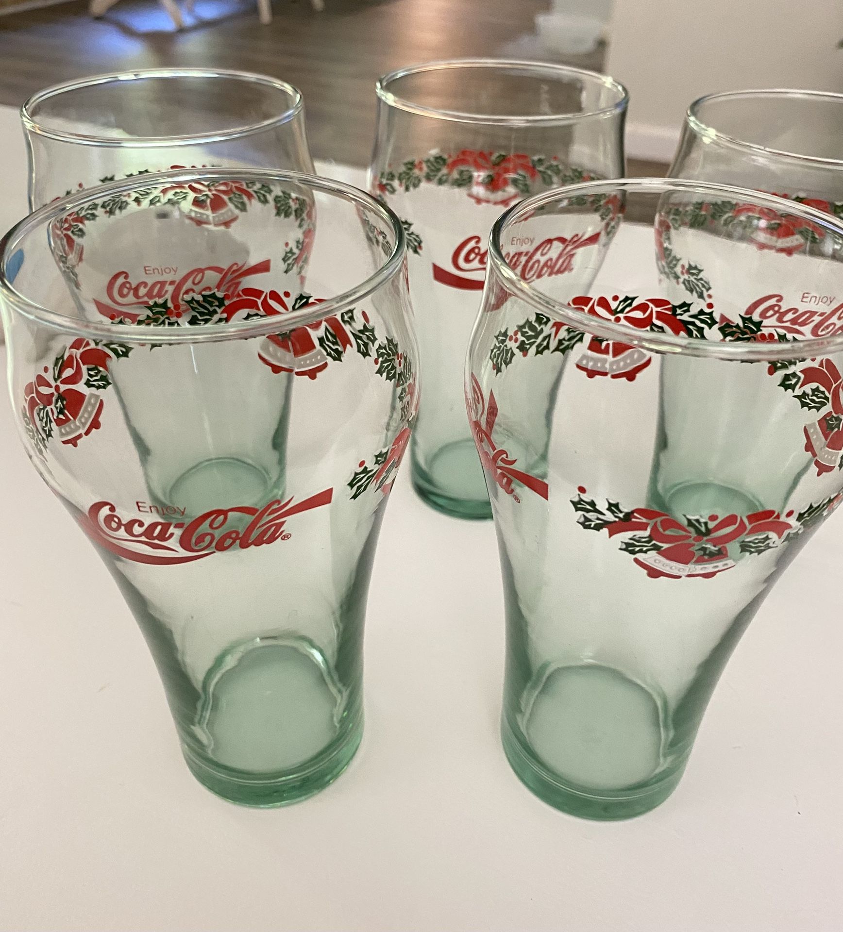 Beautifully decorated Coca Cola drinking glasses. Ready for your Christmas table or for the Christmas bar.