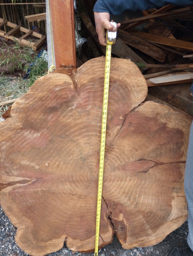Large redwood season slabs ,3.5 ft wide to 5 ft wide 220.00 each round and square sizes available. All seasoned 5 years. Dry and ready. Many to choose from. And other bar tops and slabs of maple. Some sanded ones are a little more.