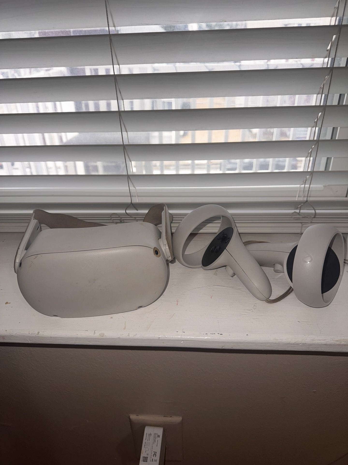 Working Vr, needs a new face shield and has original head strap but would recommend replacing as well. Needs new remotes as well but usable with hand motions that’s why price is lower to account for the new stuff needed.