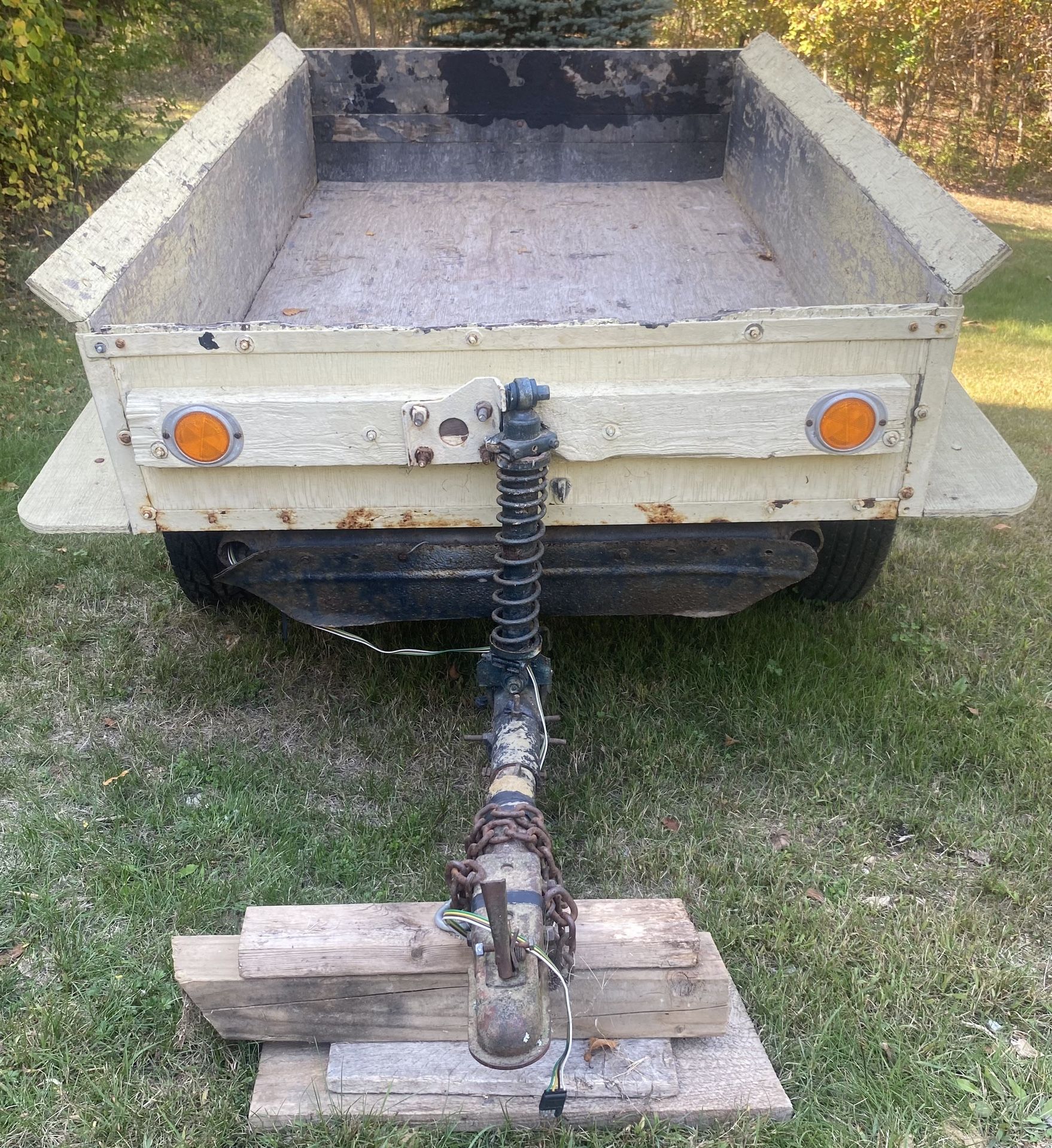 All purpose utility trailer. Well built! Comes with spare tire. Electrics work. Measurements are 78 x 46. Wheel size: 215/85R10.