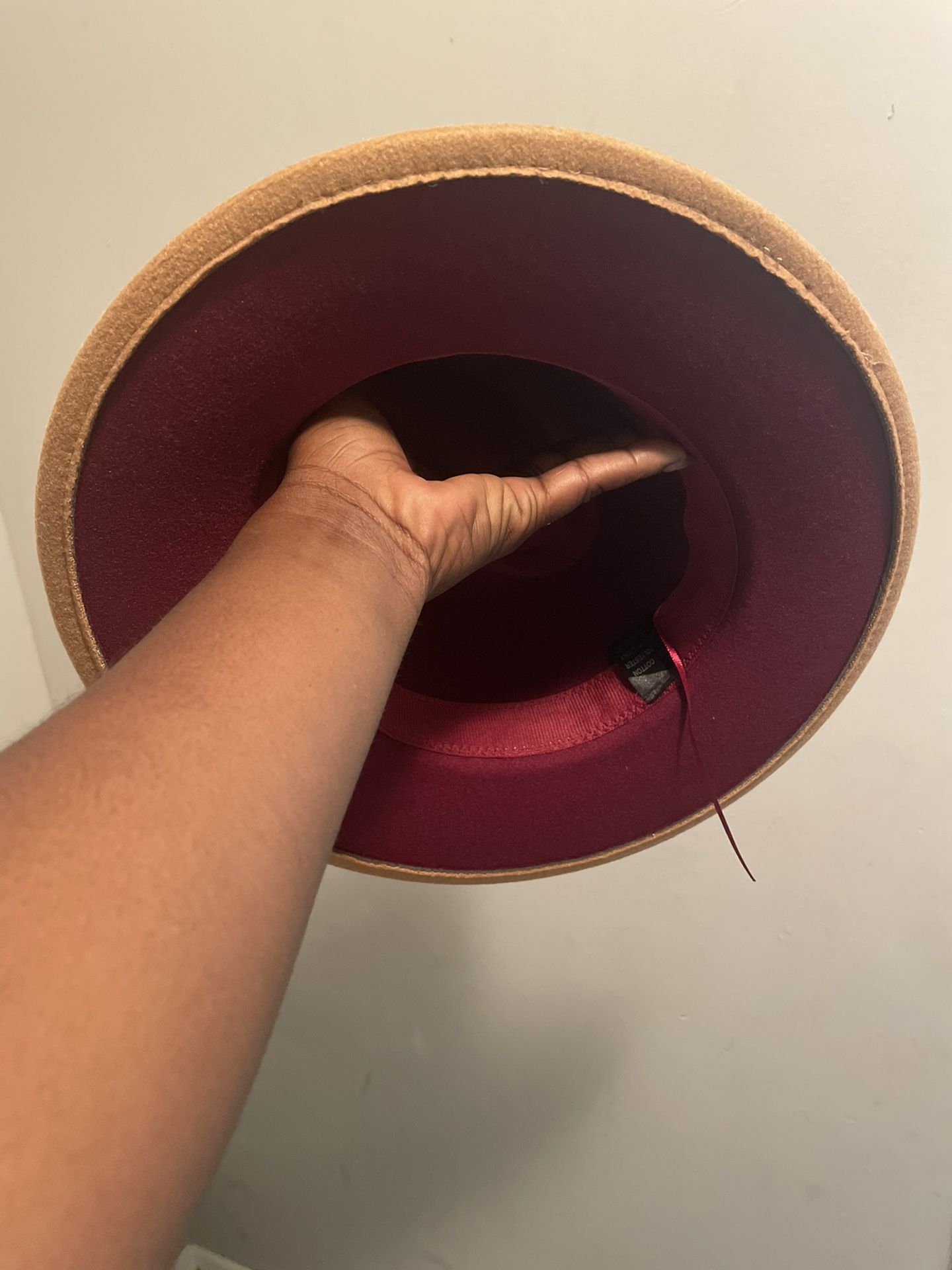 Burgundy And Tan Fedora Hat