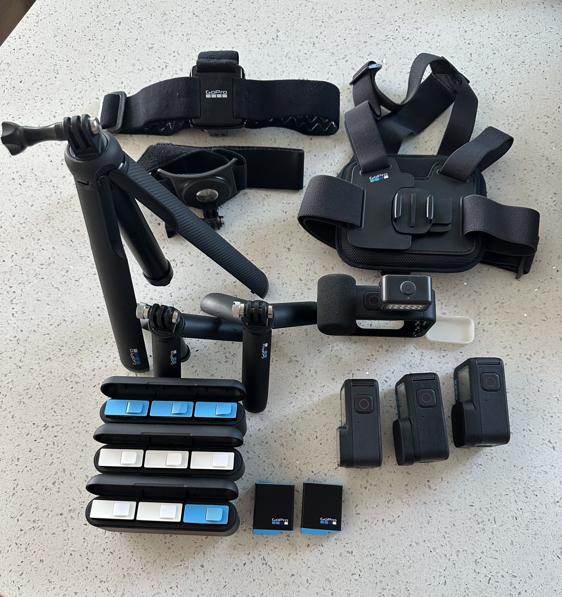 This is a huge GoPro Bundle with several additional batteries and accessories. Everything is like new. Please scroll through the photos because many items are pictured separately in different photos. Here’s what’s included: GoPro Hero 9, 10 and 11 with Cases 11 batteries and cases to hold them GoPro Creator Kit GoPro Hand and Wrist Strap with Case GoPro Head Strap GoPro Handler Floating Hand Grip NO TRADES