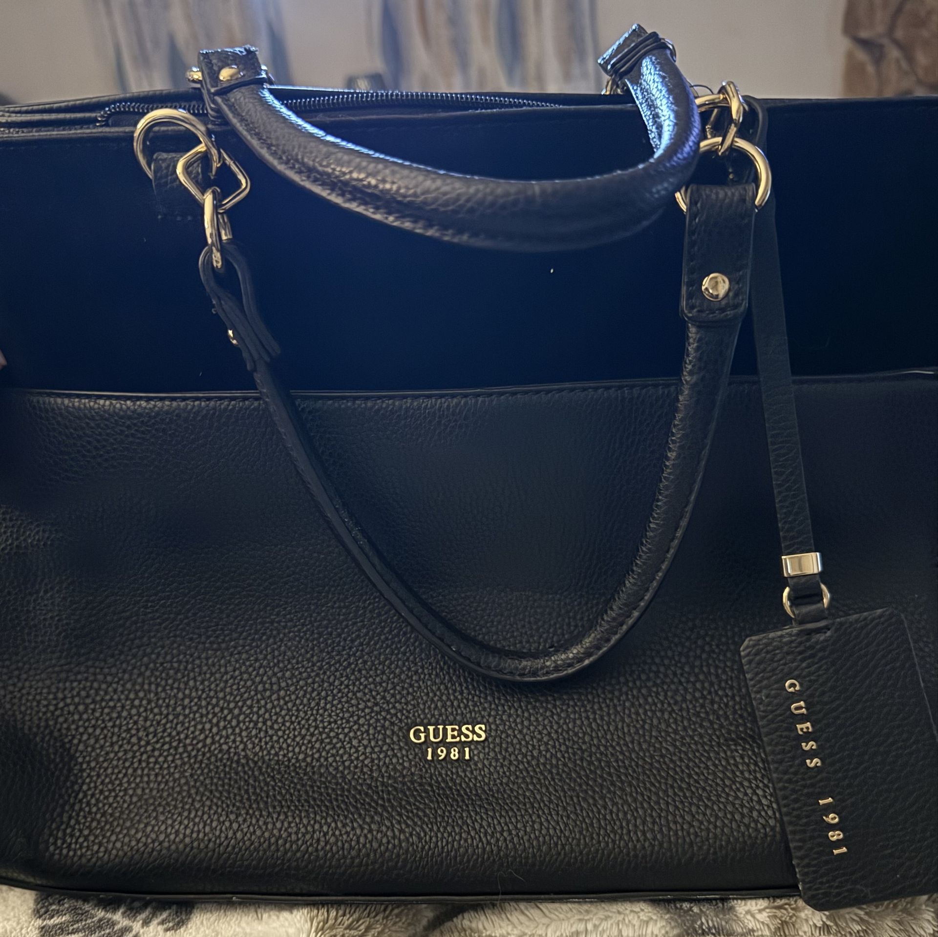 Stylish Guess 1981 Paris black leather /suede handbag with gold accents. New, never used!