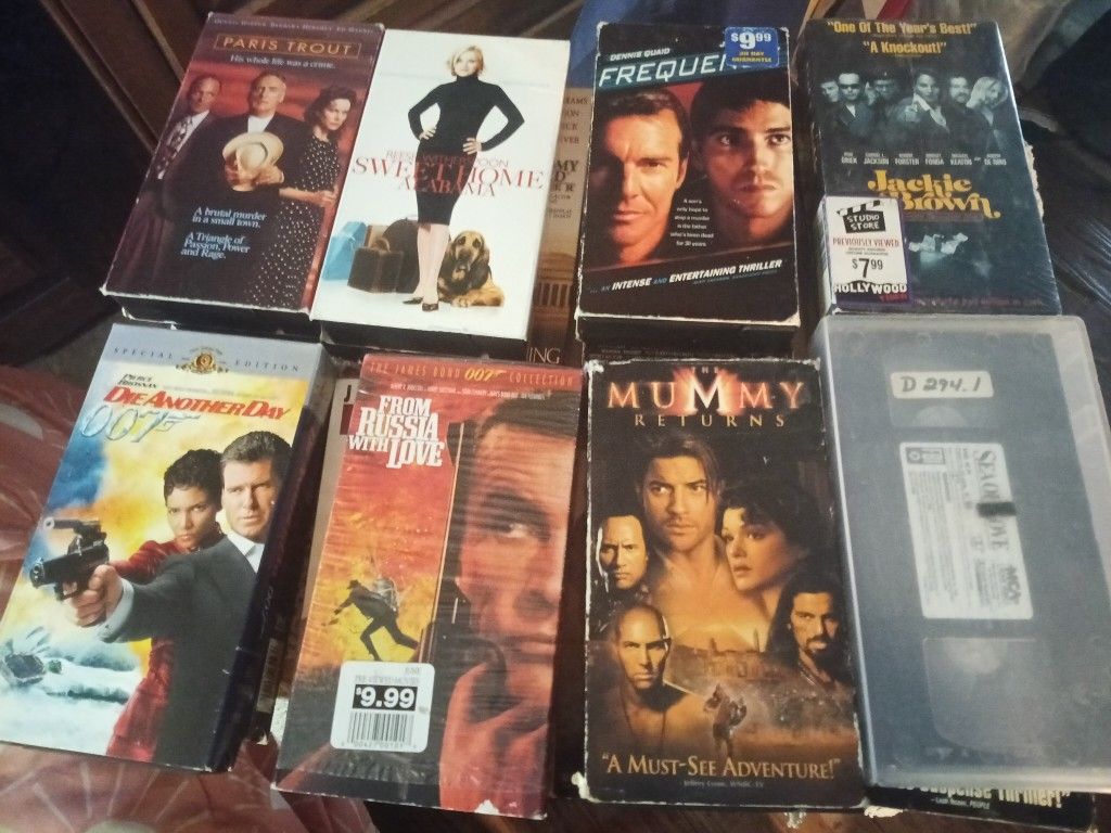 The product is a collection of VCR tapes featuring movies with various popular actors such as Denzel Washington, Al Pacino, Robert De Niro, Matt Damon, and more. These former rental tapes are from the United States and include a wide range of classic and contemporary movies. The assortment of titles and talent makes this collection a valuable addition to any movie enthusiast's collection, offering hours of entertainment and nostalgia for fans of classic cinema.