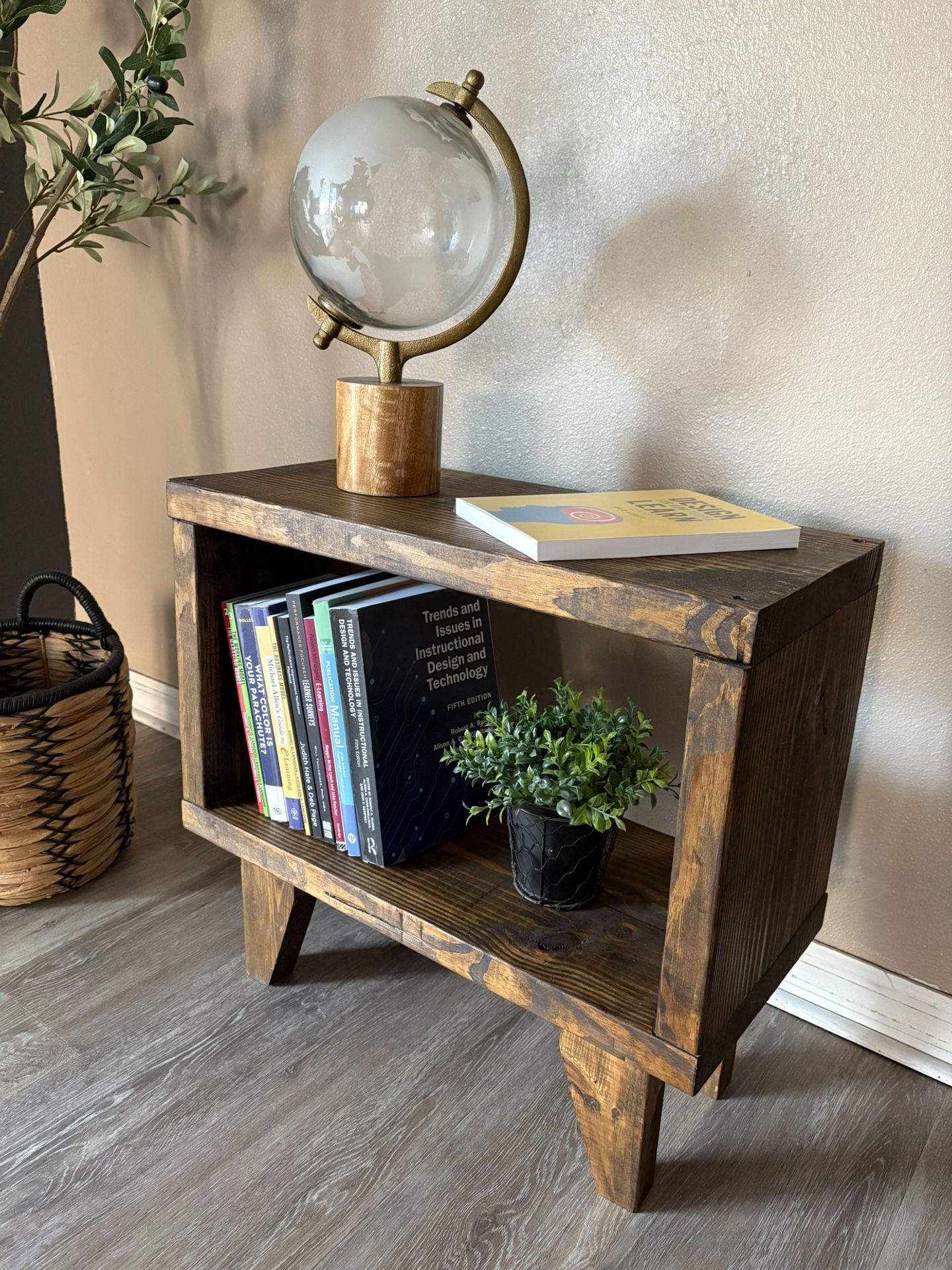 Solid wood table! Great for a coffee table, book storage, boardgames, video games, etc. Since it is solid wood, it can be placed outdoor as well. Absolutely nothing wrong with it. Excellent conditions. The table is 22 inches tall (almost 2 ft), 11 inches depth, 23 inches wide and 12 inches in the inner sección. Price is firm since this is real solid wood! Thank you all