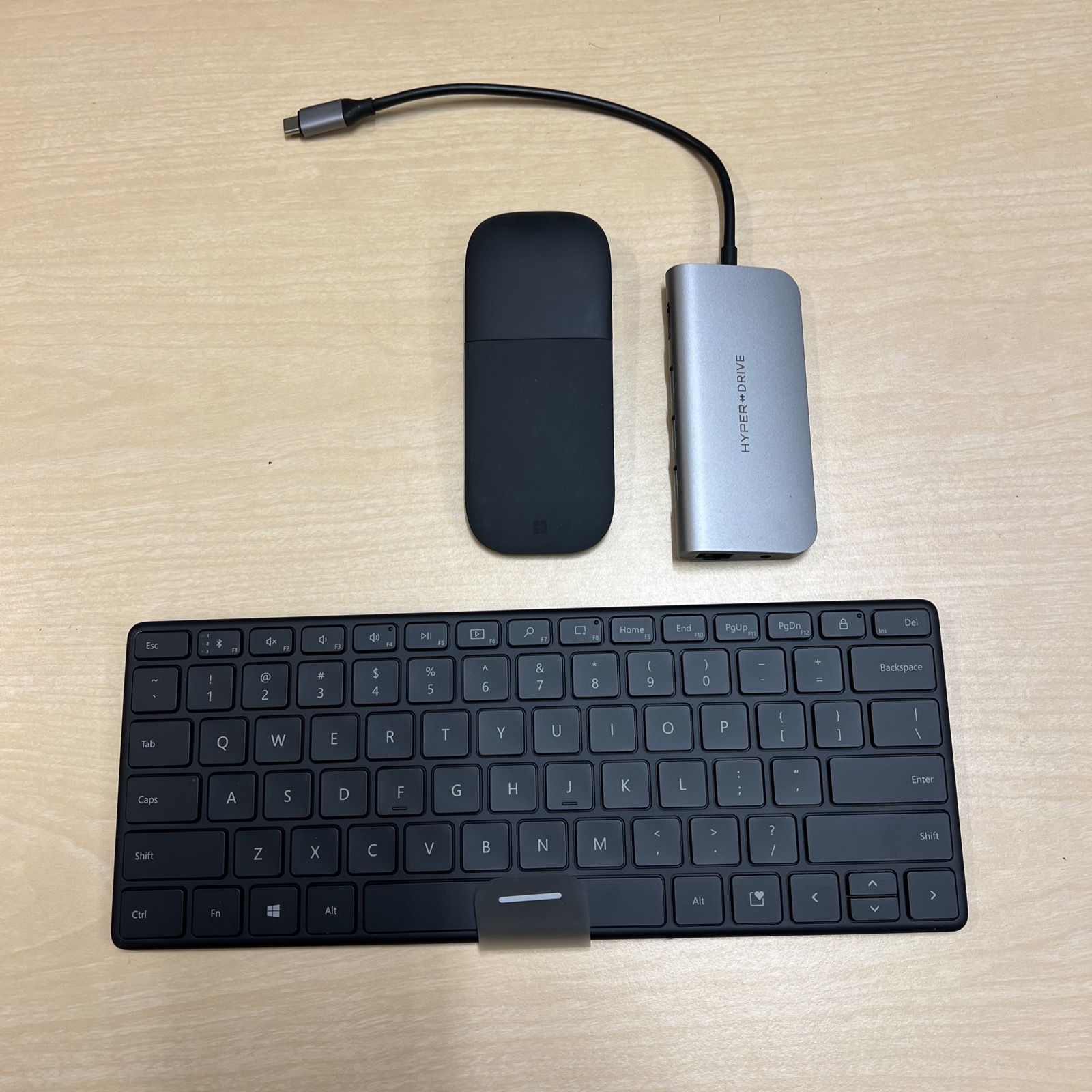 Hub is USB-C, mouse and keyboard are Bluetooth