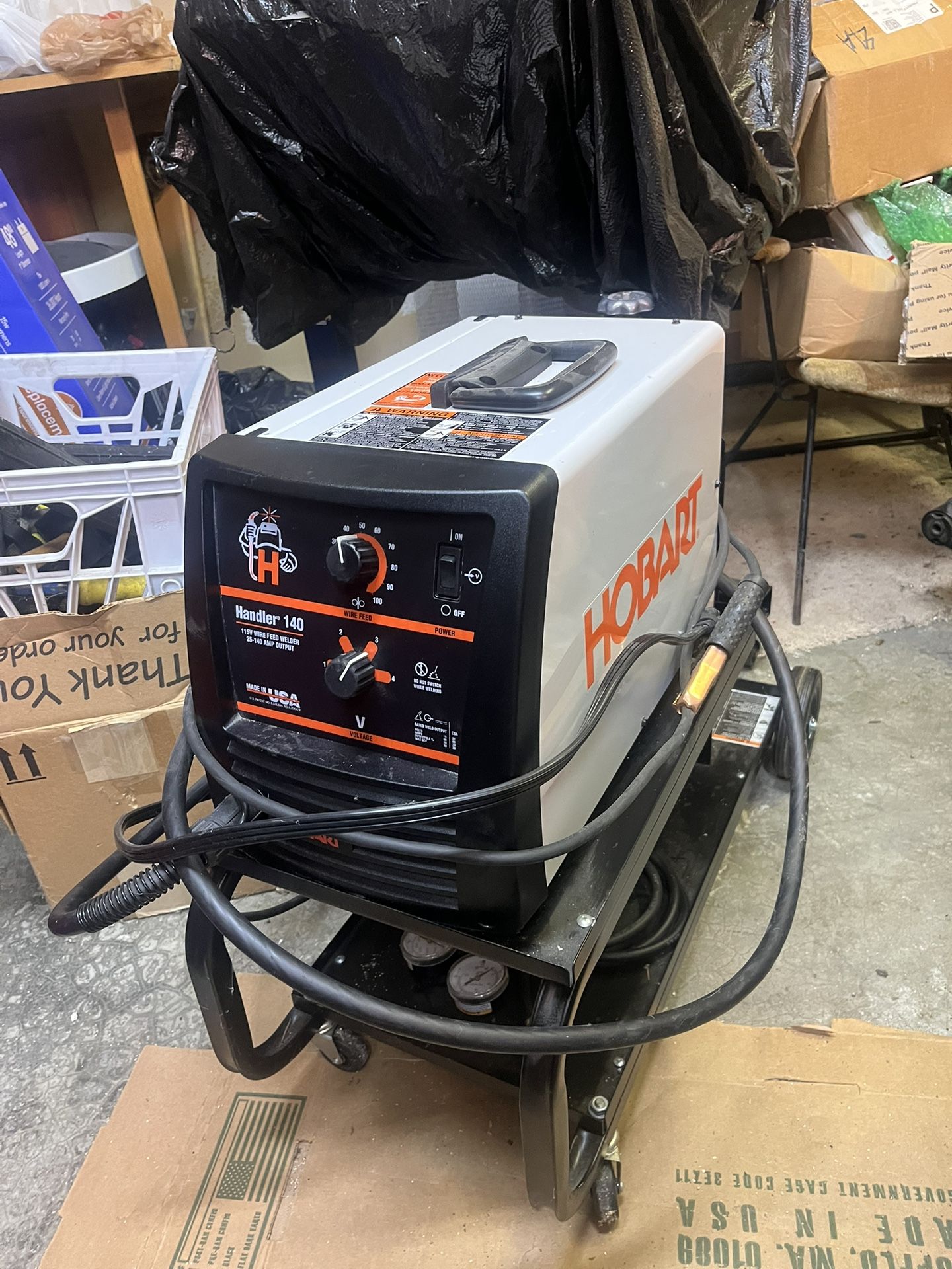 Hobart Handler 140 welder with regulator, bottle, cart. Very good condition, used very little