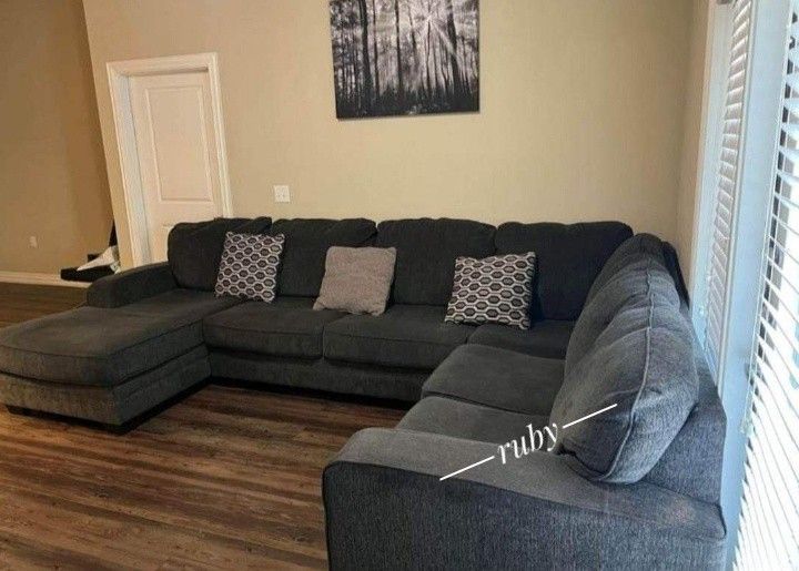 Brand New Living Room Set| Slate Gray U Shape Large Comfy Deep Seating Ashley Sectional Sofa Couch With Chaise| Grey| Tracling