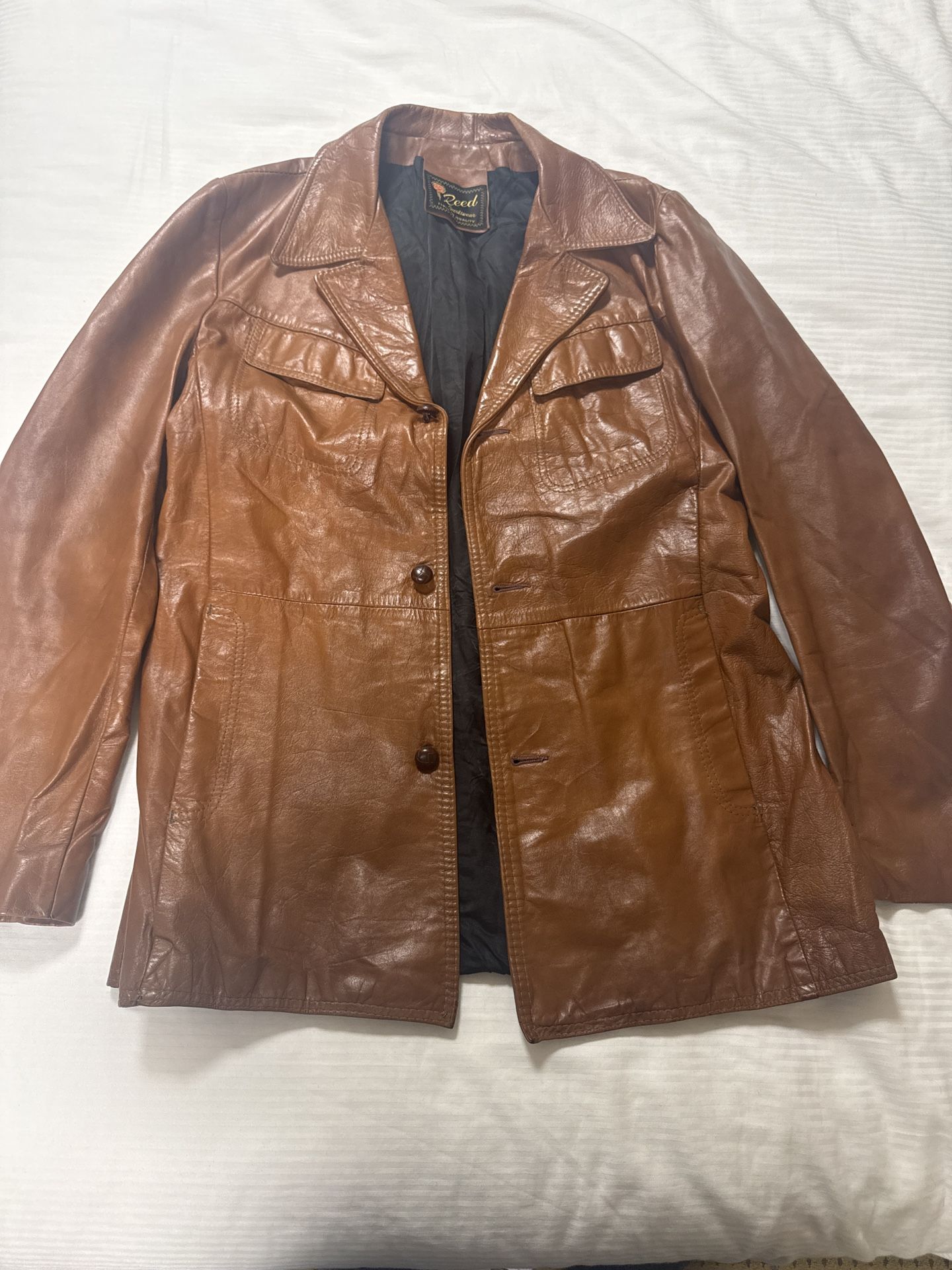 A antique leather bikers jacket in mint condition fit to size any in large jacket sizes