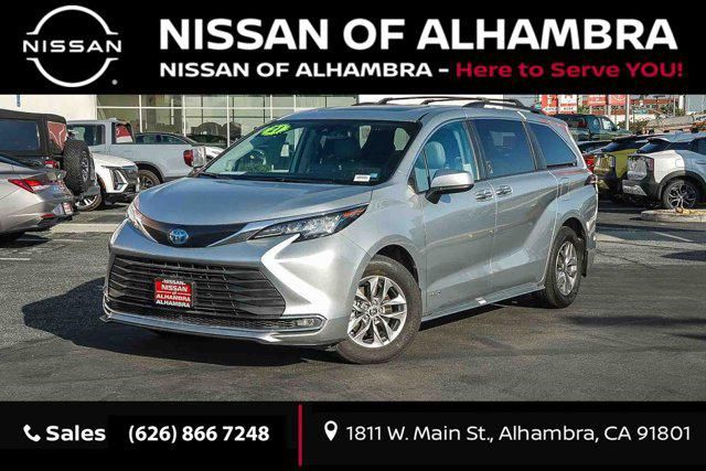 **NON SMOKER**, **FRESHLY DETAILED**, **BACK UP CAMERA**, **KEYLESS ENTRY**, **ALLOY WHEELS**, **CLEAN CARFAX**.FALL SALES START NOW.2021 Toyota Sienna XLE 8 Passenger XLEClean CARFAX. CARFAX One-Owner.Nissan of Alhambra - "Here to Serve YOU!" Vehicle May Include These Features; 17" Alloy Wheels, 3rd row seats: split-bench, 4-Wheel Disc Brakes, 8 Speakers, ABS brakes, Air Conditioning, Alloy wheels, AM/FM radio: SiriusXM, Apple CarPlay/Android Auto, Auto High-beam Headlights, Auto-dimming door mirrors, Auto-dimming Rear-View mirror, Automatic temperature control, Axle Ratio: TBA, Brake assist, Bumpers: body-color, Compass, Delay-off headlights, Door auto-latch, Driver door bin, Driver vanity mirror, Driver's Seat Mounted Armrest, Dual front impact airbags, Dual front side impact airbags, Electronic Stability Control, Emergency communication system: Safety Connect with 3-year trial, Exterior Parking Camera Rear, Four wheel independent suspension, Front anti-roll bar, Front Bucket Seats, Front dual zone A/C, Front fog lights, Front Heated Bucket Seats, Front reading lights, Fully automatic headlights, Garage door transmitter: HomeLink, Heated door mirrors, Heated front seats, Illuminated entry, Knee airbag, Lane Departure Warning System, Leather Shift Knob, Leather steering wheel, Low tire pressure warning, Occupant sensing airbag, Outside temperature display, Overhead airbag, Overhead console, Panic alarm, Passenger door bin, Passenger seat mounted armrest, Passenger vanity mirror, Power door mirrors, Power driver seat, Power Liftgate, Power moonroof, Power passenger seat, Power steering, Power windows, Radio data system, Radio: Audio Plus, Rear air conditioning, Rear anti-roll bar, Rear dual zone A/C, Rear reading lights, Rear side impact airbag, Rear window defroster, Rear window wiper, Reclining 3rd row seat, Remote keyless entry, SofTex Seat Trim, Speed control, Speed-sensing steering, Split folding rear seat, Spoiler, Steering wheel mounted audio controls, Tachometer, Telescoping steering wheel, Tilt steering wheel, Traction control, Trip computer, Turn signal indicator mirrors, and Variably intermittent wipers Call Now! (626) 240-5301.